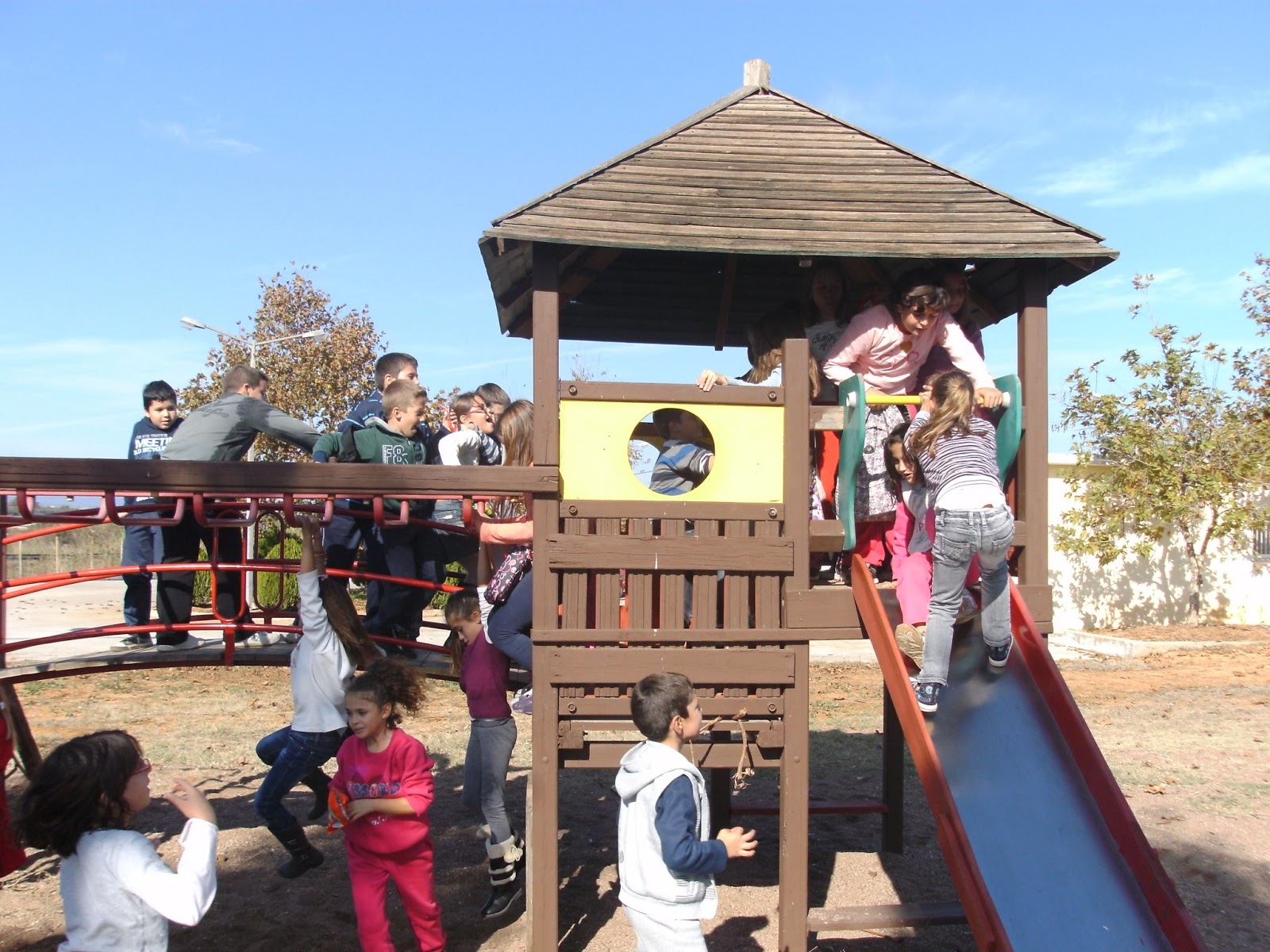 Ήμαστε και τυχεροί γιατί υπήρχε και μια παιδική χαρά. Παίξαμε και μετά φύγαμε για το σχολείο μας.