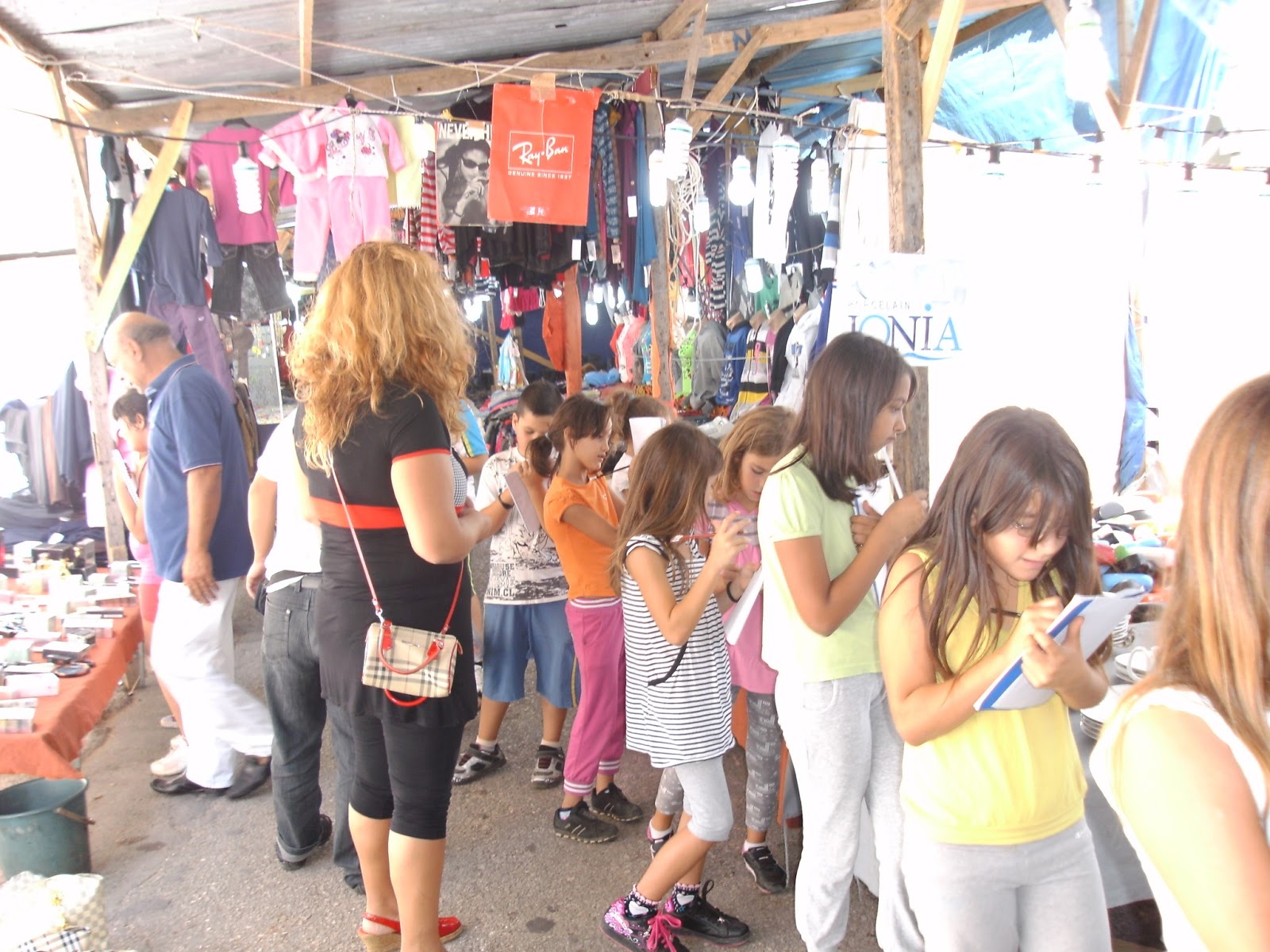 Μπλούζες και κοσμήματα, κολόνιες με 10 € που μύριζε σαν γουρούνι, λουκουμάδες, ζώνες με 1€, φόρμες σεντόνια, φλιτζάνια, παιχνίδια ρολόγια κάλτσες χαλιά, καπέλα πιάτα σουβλάκια γλειφιτζούρια, βρακάκια, πυτζάμες, εργαλεία και μπουφάν.