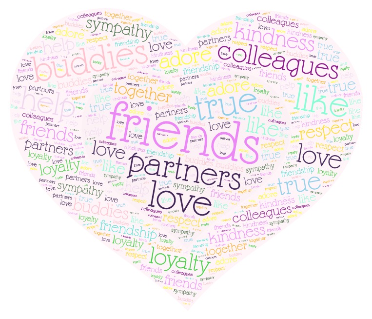 f) Δημιουργήσαμε συννεφόλεξα με λέξεις στα αγγλικά συνώνυμες με τη φιλία, την ευγένεια, την καλοσύνη, την ομαδικότητα και πολλές άλλες: