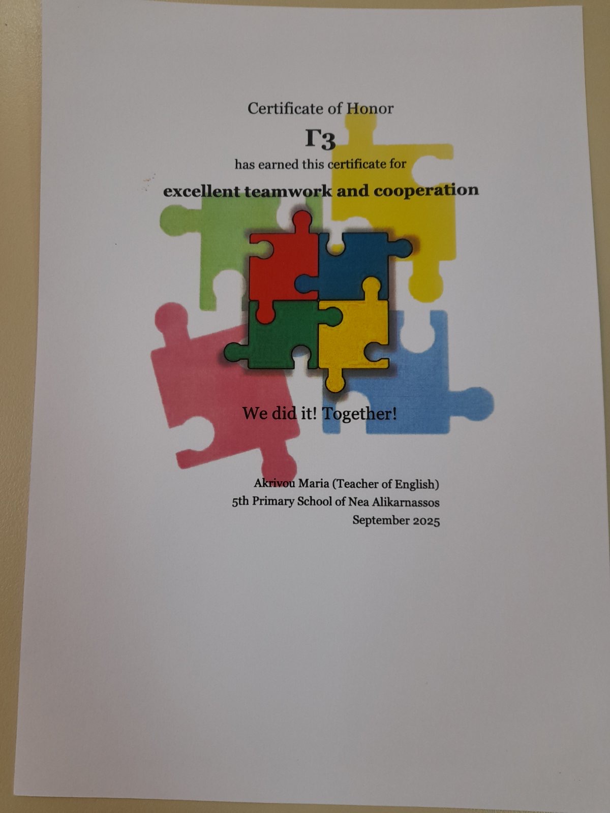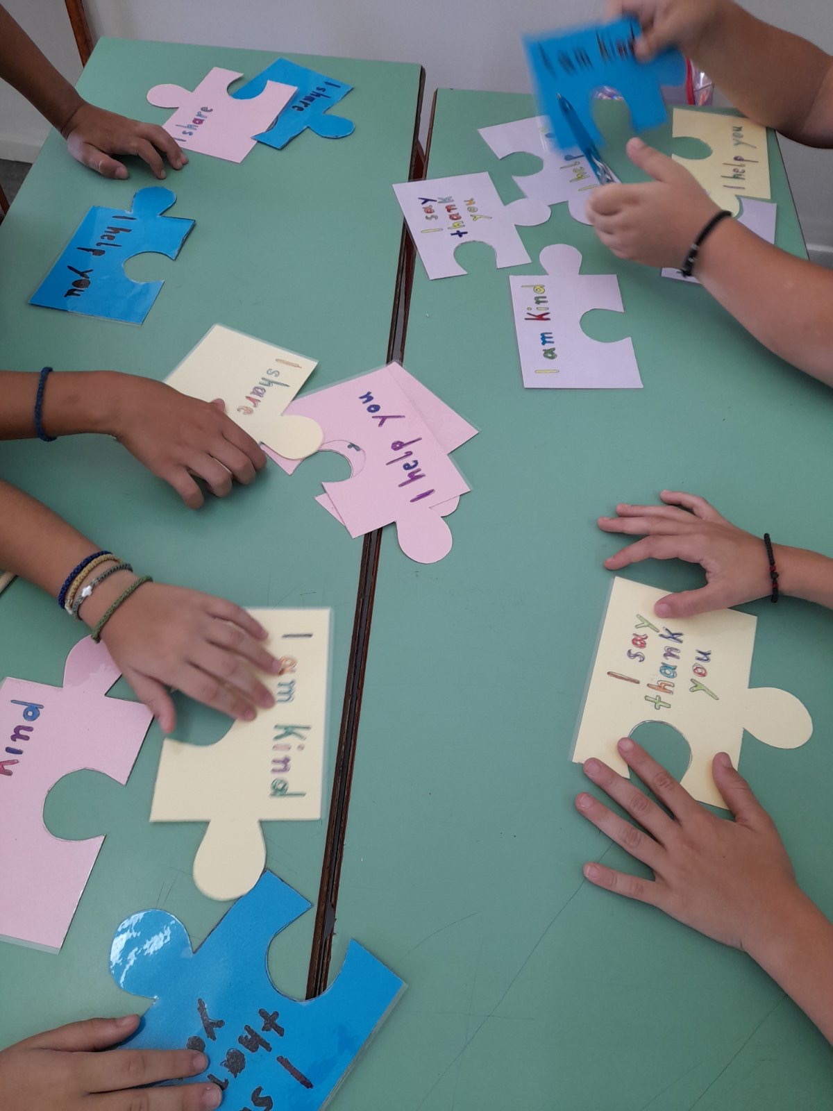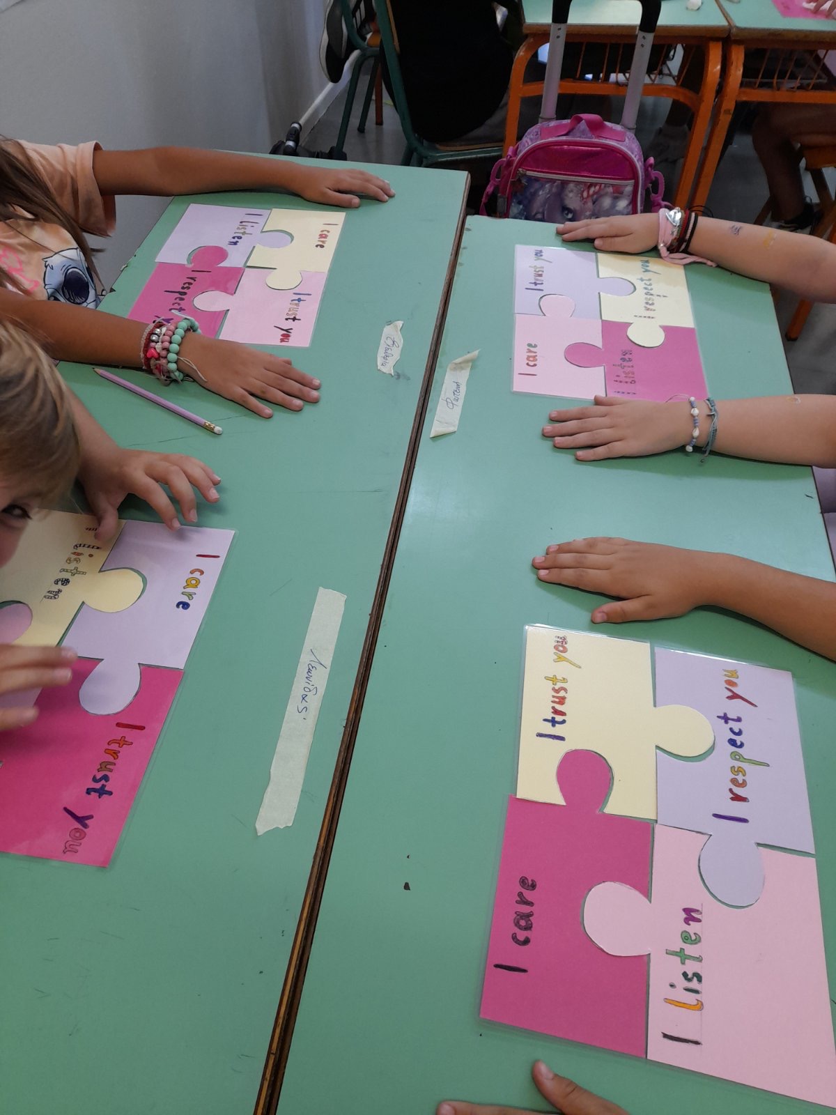 Οι μαθητές του Γ3 ολοκλήρωσαν σε ομάδες το puzzle της συνεργασίας και μετά το έκαναν τραγούδι και το τραγούδησαν με κέφι.
