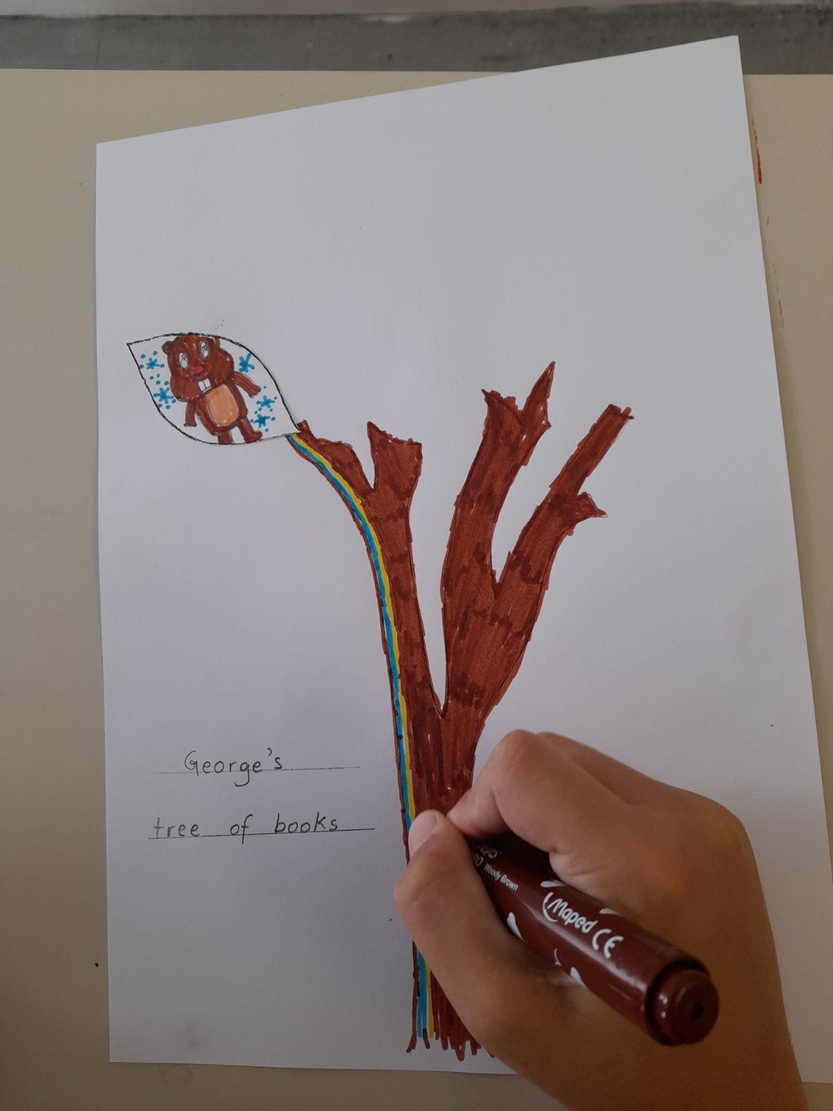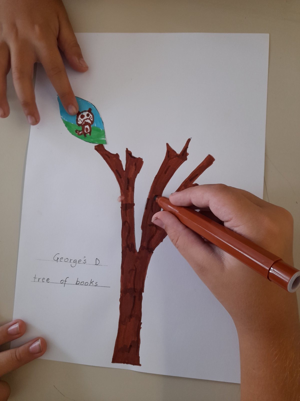 Μετά τη συζήτηση οι μαθητές του Ε3 εμπνεύστηκαν από το e-book για να φτιάξουν το πρώτο φυλλαράκι του δικού τους tree of books ( ένα project φιλαναγνωσίας που θα δουλέψουμε όλη τη σχολική χρονιά καθώς θα προσθέτουμε ένα φυλλαράκι για κάθε αγγλικό e-book που θα παρακολουθούμε ).
