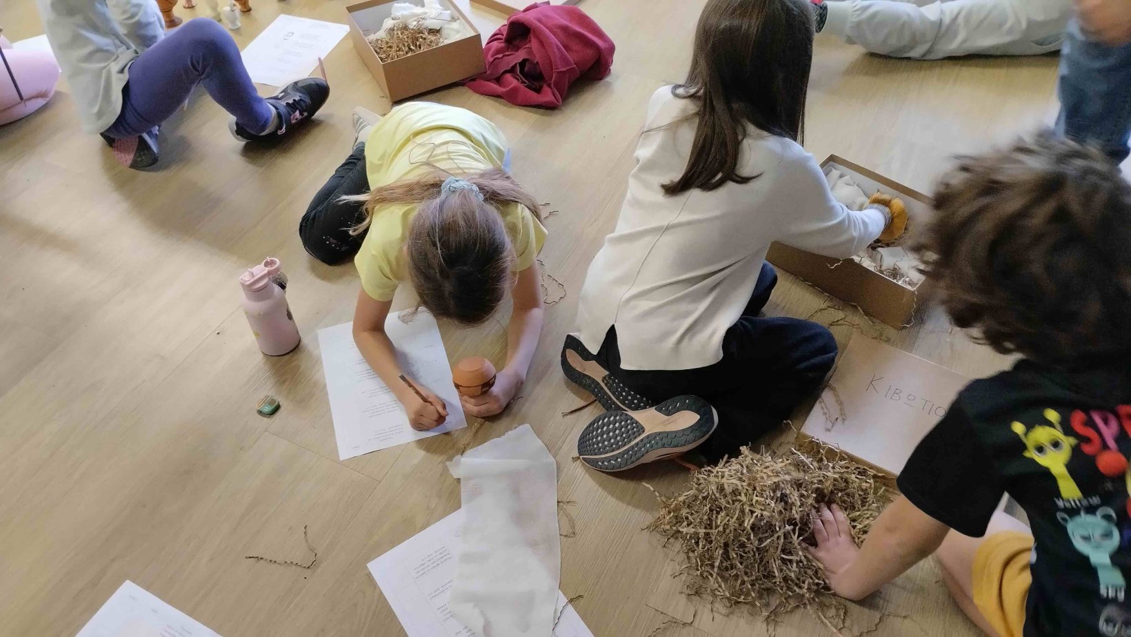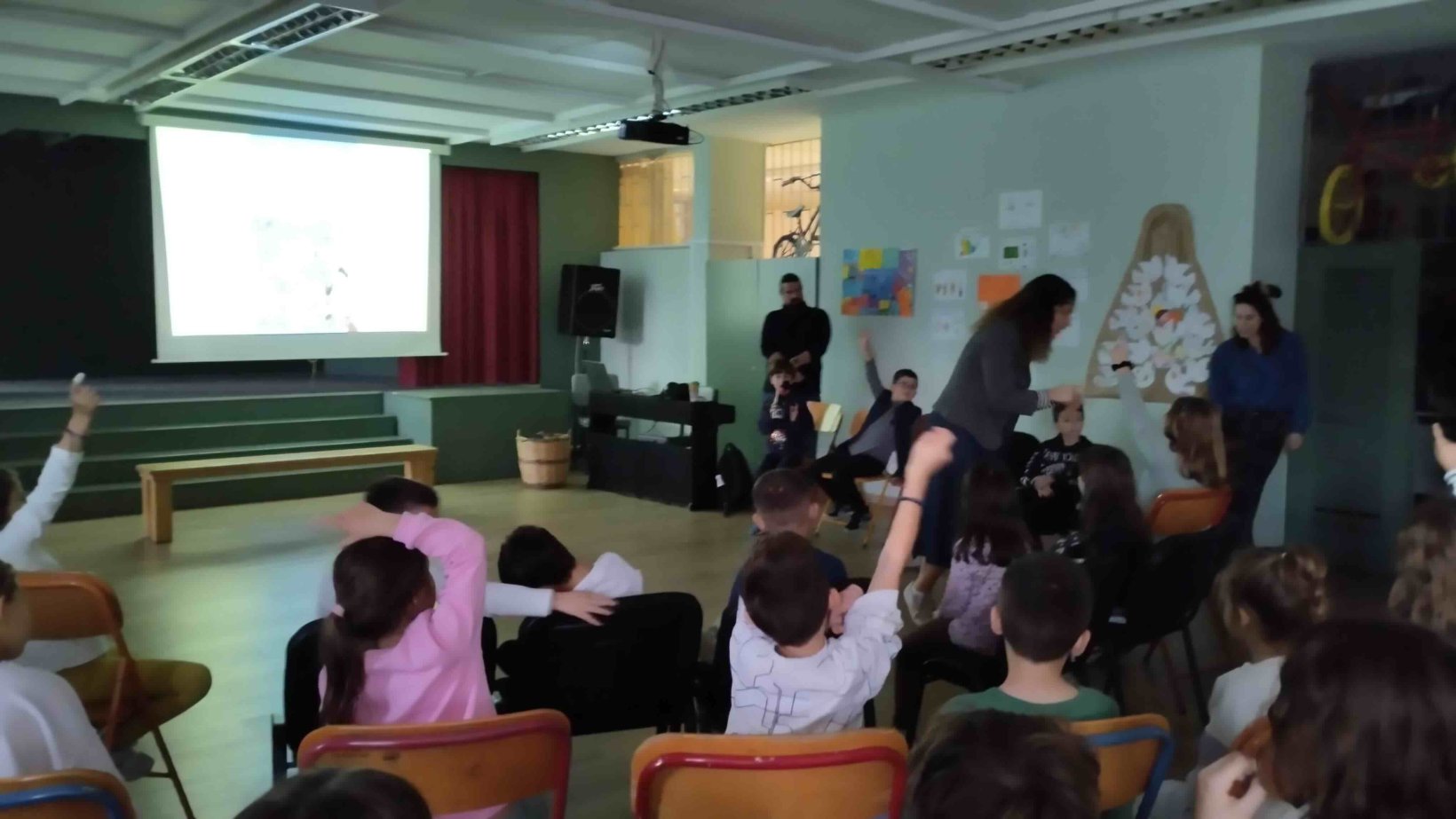 Στο β’ μέρος οι μαθητές/τριες όλων των τάξεων (το κάθε τμήμα ξεχωριστά) πήραν μέρος σε βιωματικές δράσεις χωρισμένοι/ες σε μικρές ομάδες, αναλαμβάνοντας ρόλο αρχαιολόγου και στο τέλος έφυγαν από την αίθουσα ενθουσιασμένοι!