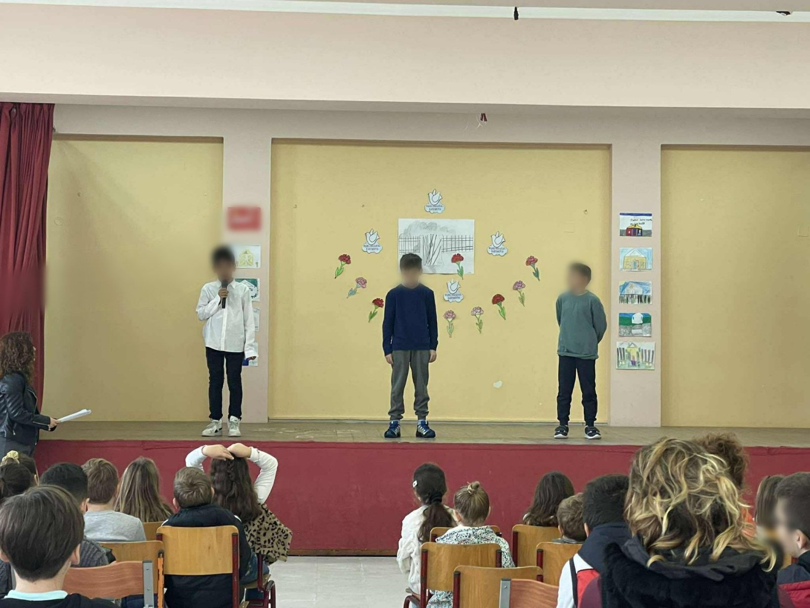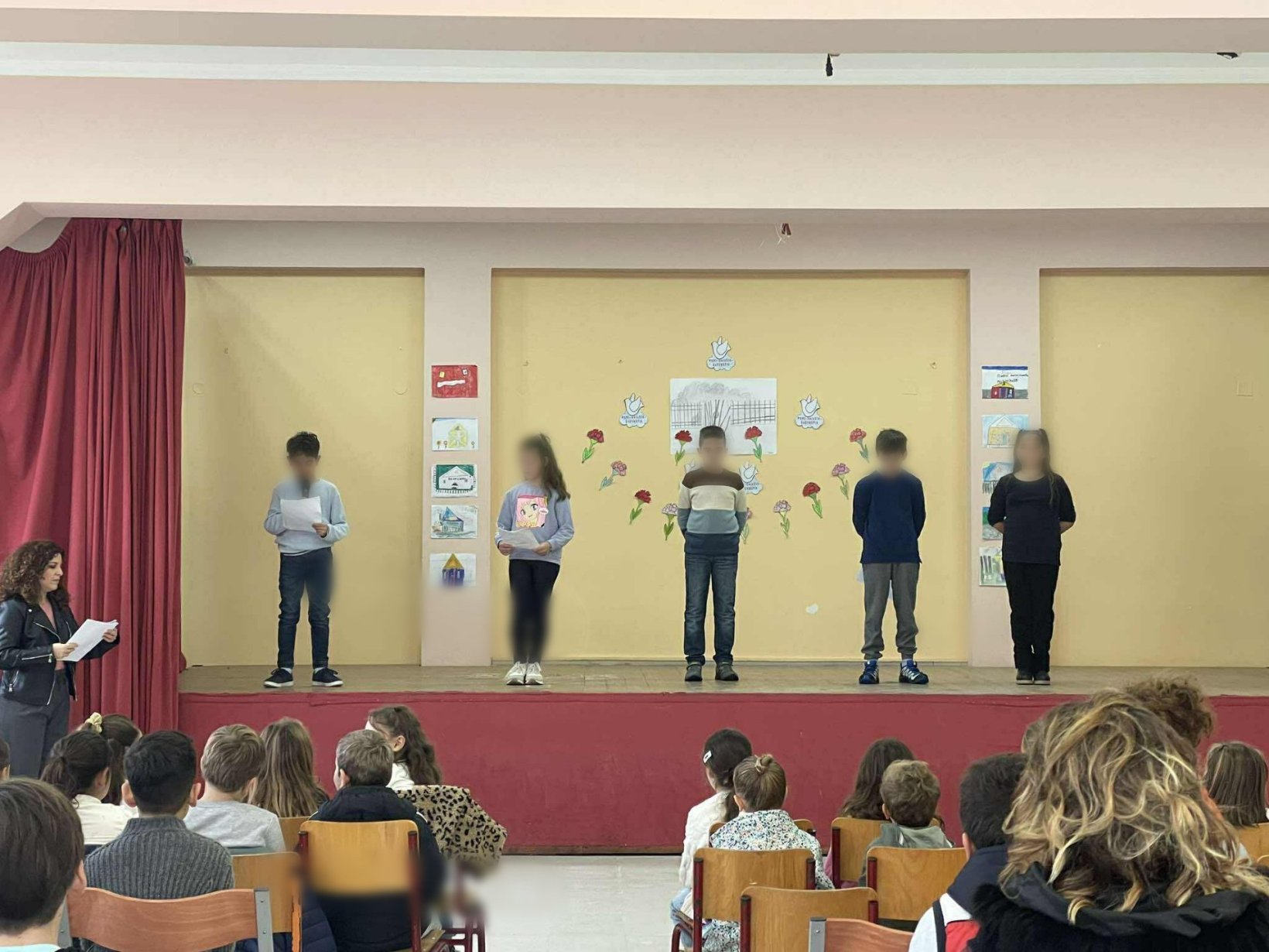 Στο σχολείο μας πραγματοποιήθηκε μια όμορφη, ζεστή και συγκινητική γιορτή. Τα παιδιά διάβασαν κείμενα, απήγγειλαν ποιήματα και τραγούδησαν, ενώνοντας τις φωνές τους ενάντια στη δικτατορία και μεταφέροντας το μήνυμα της ενότητας και της ελευθερίας. Με απλότητα και αλήθεια, κατάφεραν να δημιουργήσουν μια δυνατή ατμόσφαιρα μνήμης, κάνοντας όλους μας να αναλογιστούμε τη σημασία του Πολυτεχνείου σήμερα.