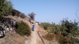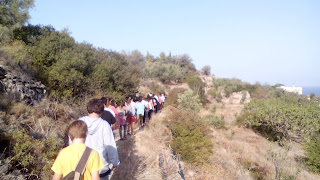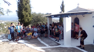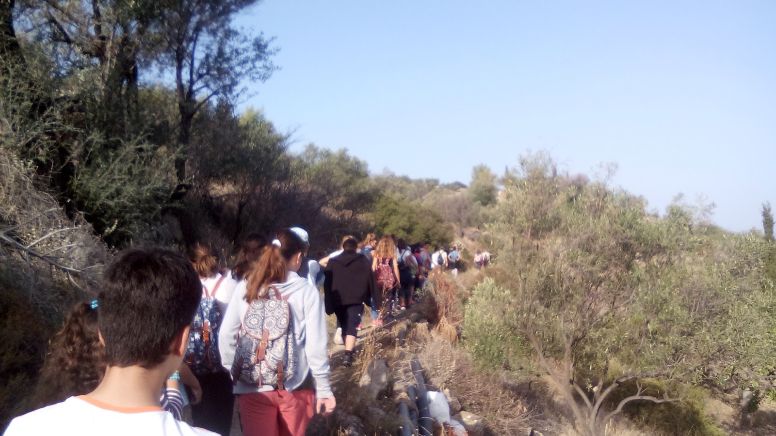 Η ανάβαση ομαλή και η υπέροχη θέα από το πλάτωμα της Ανάληψης μαγευτική. Η διαδρομή ενδιαφέρουσα μέσα από αγροτόσπιτα παλιά και νέα, με χωράφια γεμάτα φιστικιές, λιόδεντρα, λεμονιές και οικόσιτα ζώα. Πολλά κυκλάμινα έχουν ήδη σκάσει μύτη ομορφαίνοντας το τοπίο.Η ομάδα της Περιβαλλοντικής περπατά στα μονοπάτια της Αίγινας