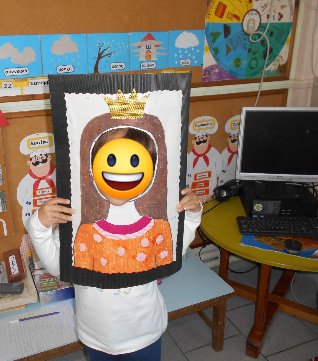 - παίξαμε μια παραλλαγή του επιτραπέζιου παιχνιδιού “στο κεφάλι το ‘χω”. Ένα παιδί φορούσε στο κεφάλι του ένα φρούτο και τα υπόλοιπα προσπαθούσαν να το περιγράψουν ώστε να βρει ποιο είναι
