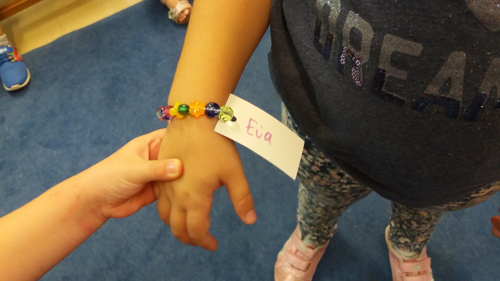 Συζητάμε για συμπεριφορές που μας αρέσουν και συμπεριφορές που μας ενοχλούν. Τις καταγράφουμε και αποφασίζουμε να υιοθετήσουμε μέσα στην τάξη τις συμπεριφορές που μας ευχαριστούν, προάγοντας αξίες όπως, της ευγένειας, του σεβασμού, της δημοκρατίας, της αλληλοϋποστήριξης και αλληλοβοήθειας. Έτσι δημιουργούμε ένα σύνθημα που να μας εκφράζει: “Ένας για όλους, όλοι για έναν,αγαπημένοι για πάντα” και το αποτυπώνουμε εικαστικά, αποτυπώνοντας το σε ένα κύκλο τις παλάμες μας.