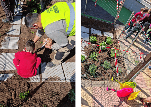 Και στη συνέχεια αναλάβαμε δράση εμείς….με τον απαραίτητο εξοπλισμό μας και τη βοήθεια των ειδικών. Φυτέψαμε στο λαχανόκηπο λαχανικά και αρωματικά φυτά