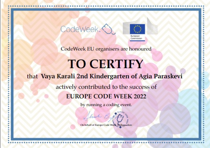Κάθε χρόνο και συγκεκριμένα κάθε Οκτώβρη, η Ευρωπαϊκή Εβδομάδα προγραμματισμού γιορτάζει και καλεί όλους τους εκπαιδευτικούς και τους μαθητές να εμπλακούν σε δραστηριότητες προγραμματισμού και ψηφιακού γραμματισμού. Φέτος, στο σχολείο μας και στο πλαίσιο του εορτασμού των δέκα χρόνων της Ευρωπαϊκής Εβδομάδας προγραμματισμού συμμετείχε στη δράση