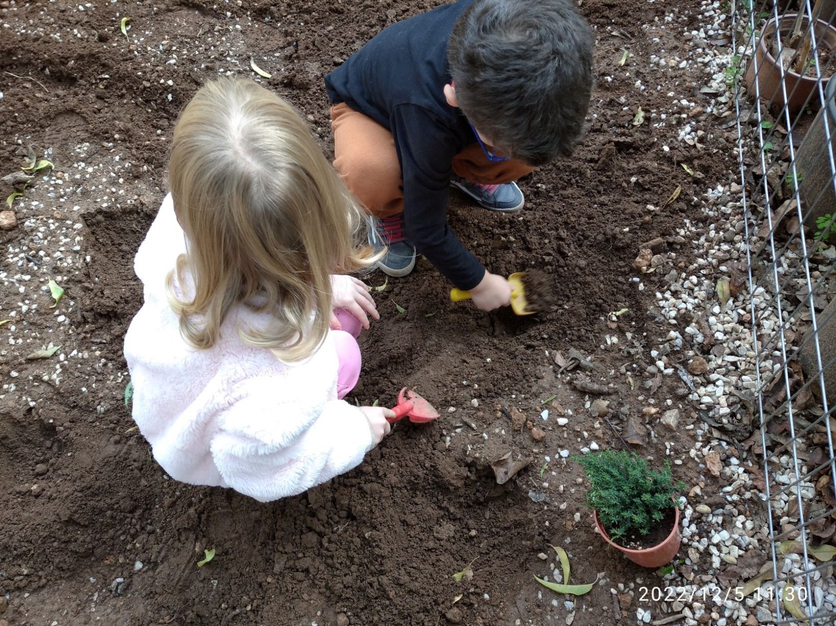 Μας πρόσφεραν σπόρους και σπορόφυτα λαχανικών και αρωματικών φυτών που φυτέψαμε στον λαχανόκηπο που διαμορφώσαμε στον κήπο της αυλής μας.