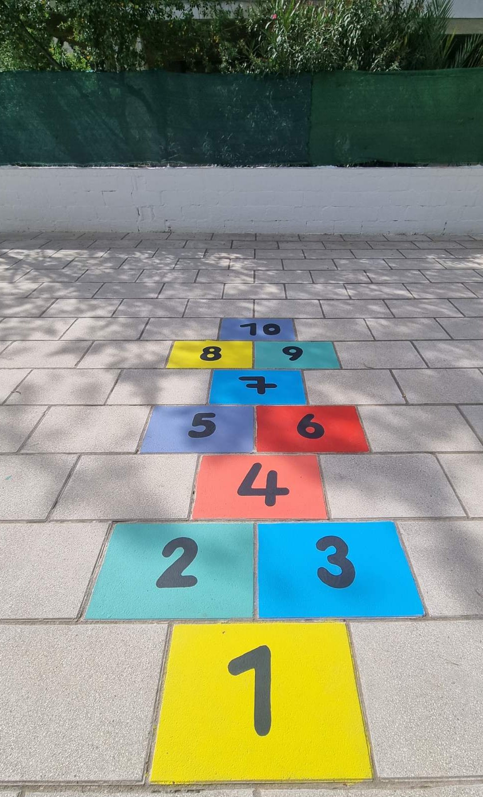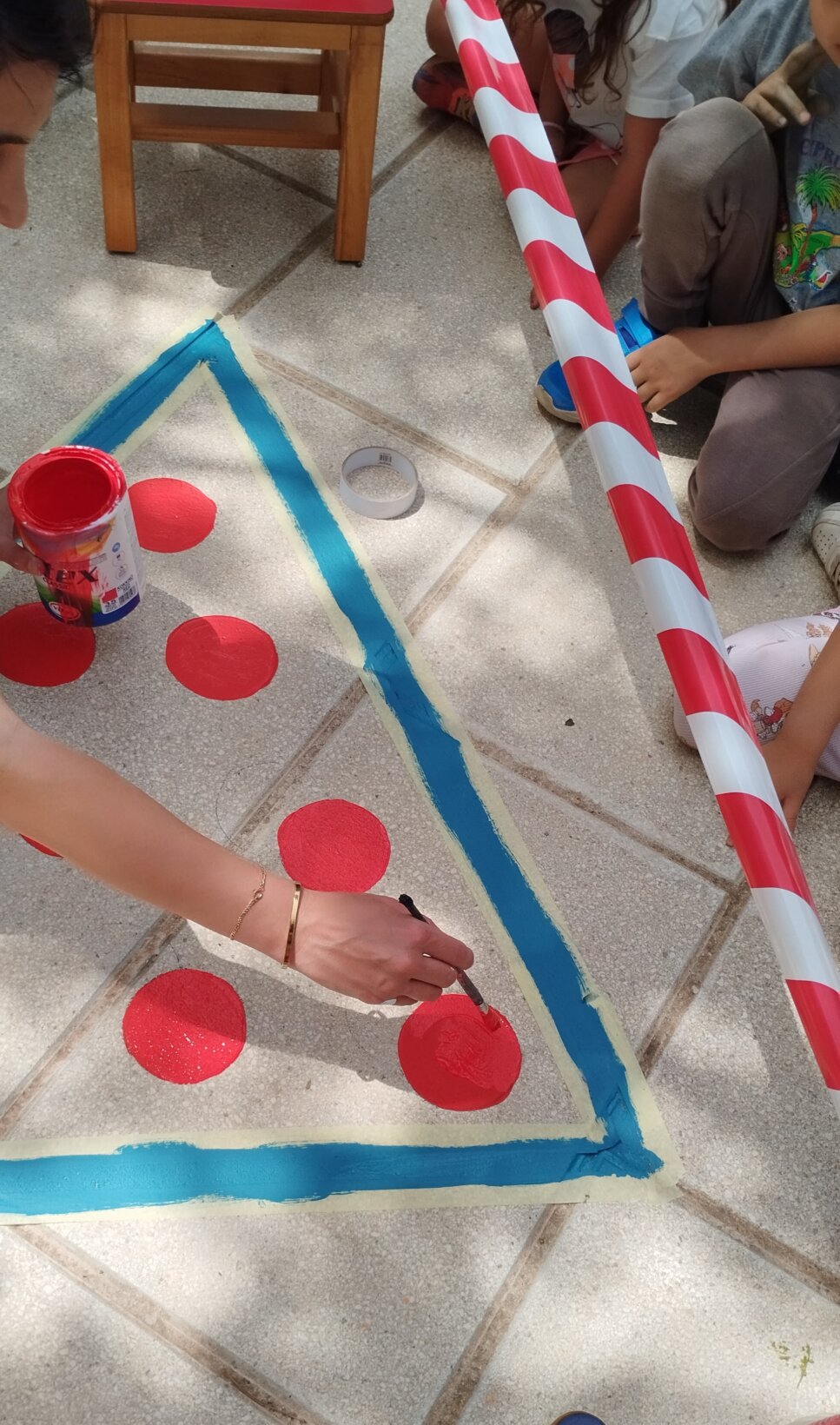 Οι εκπαιδευτικοί μαζί με τα παιδιά σχεδιάσαμε και ζωγραφίσαμε επιδαπέδια παιχνίδια.