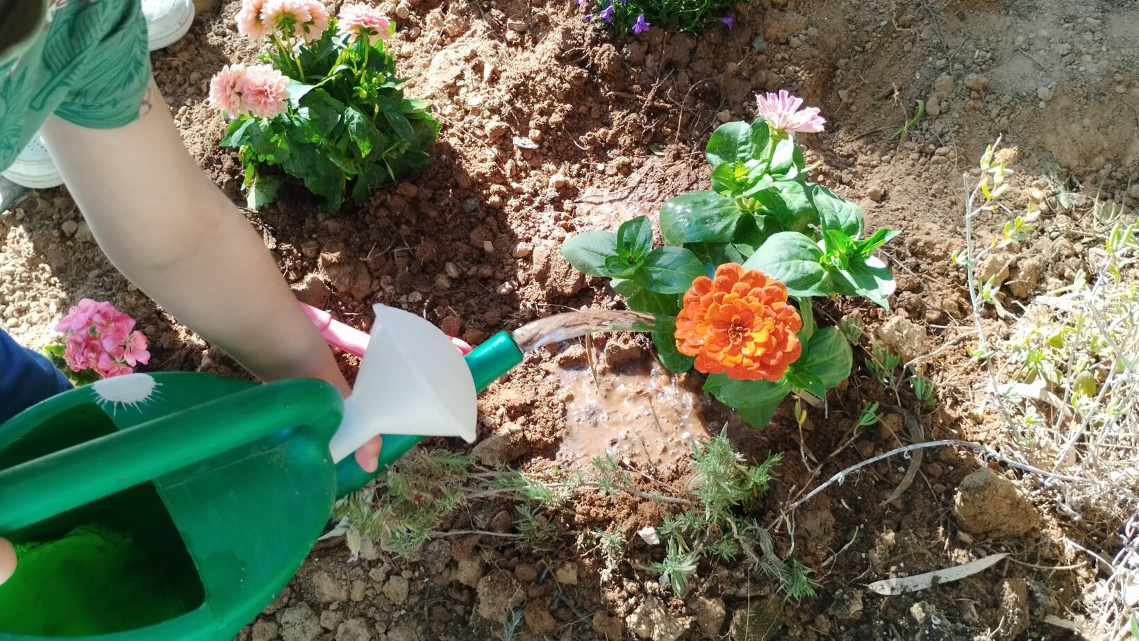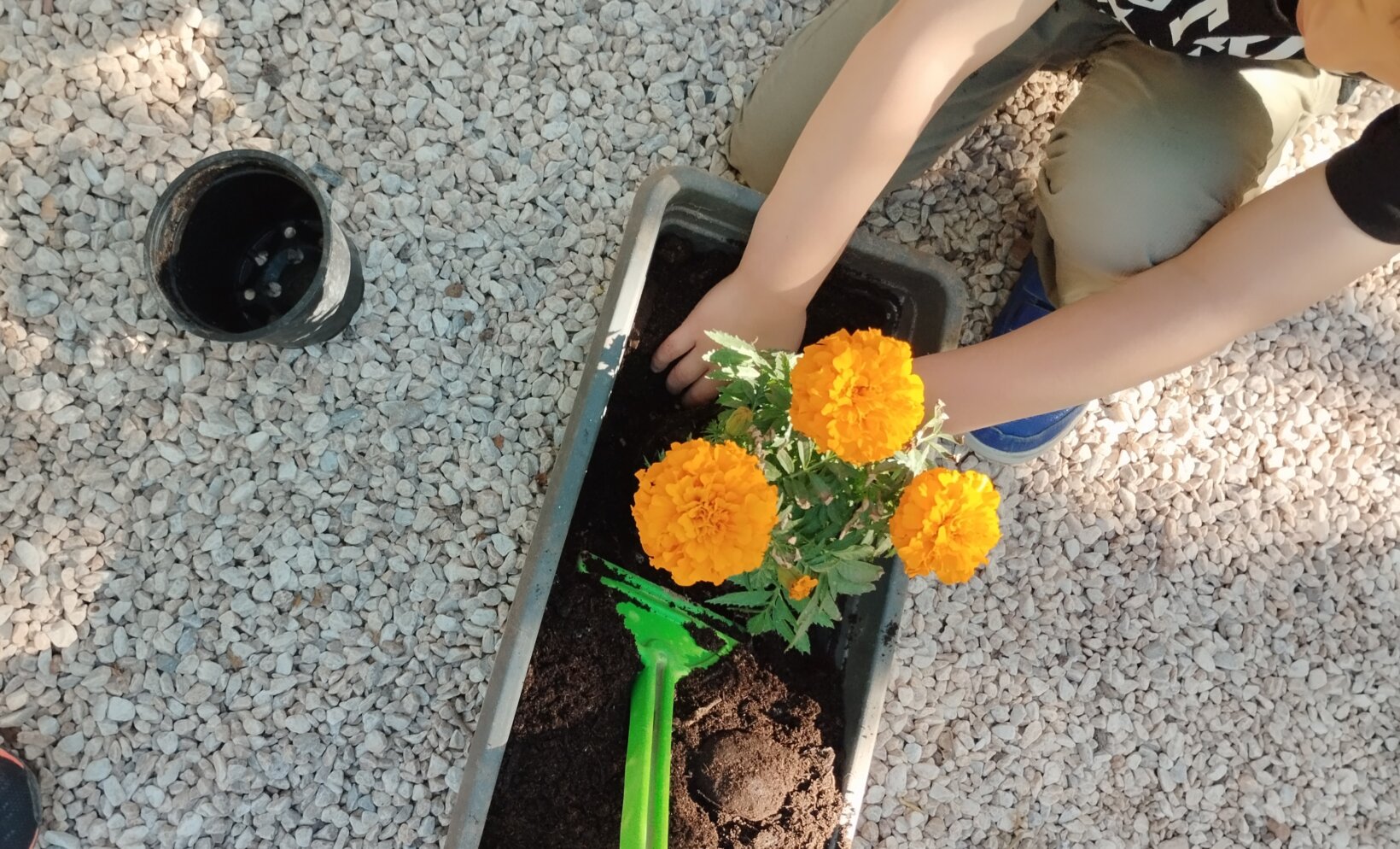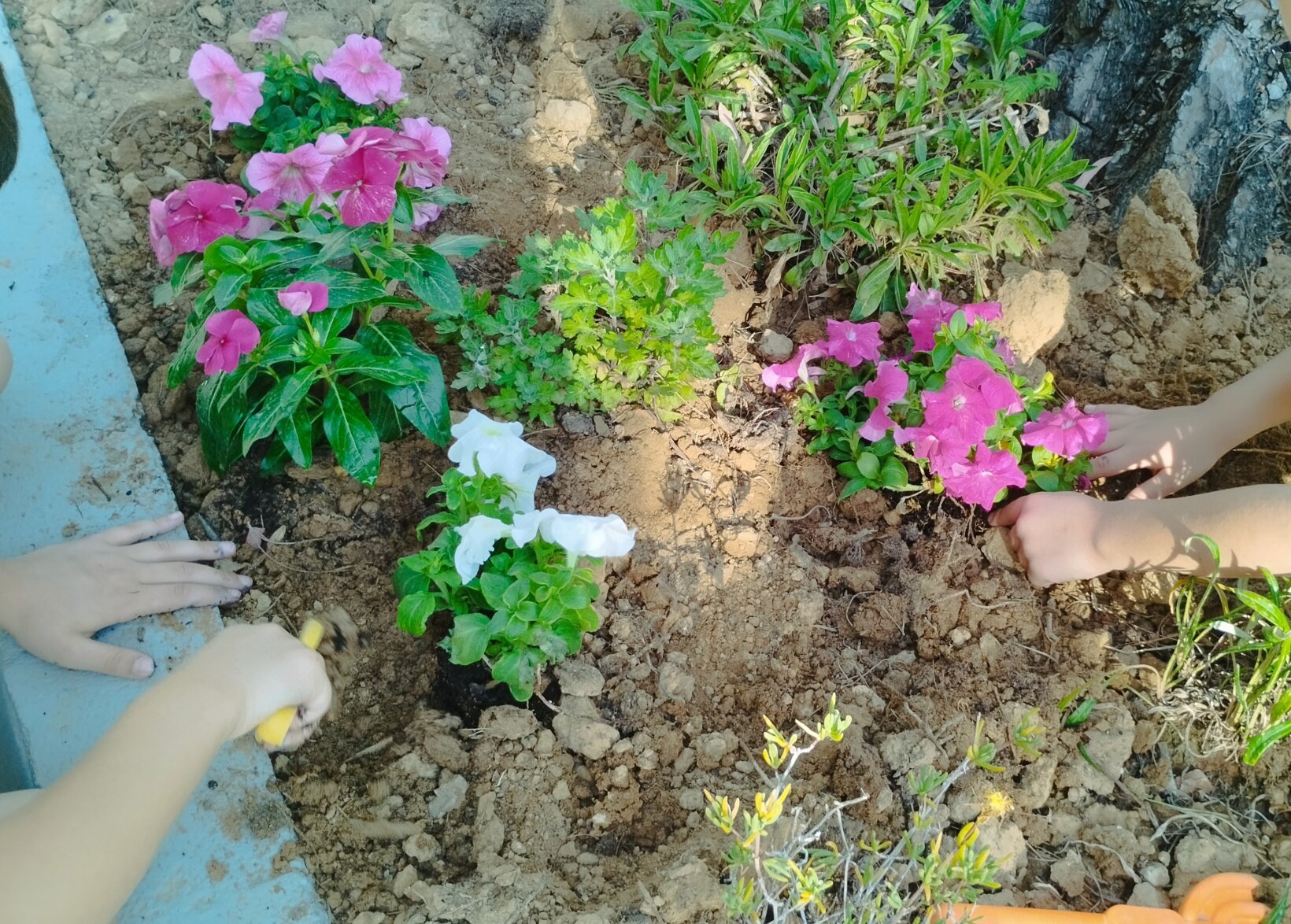 Φυτέψαμε λουλούδια που αγοράσαμε με τους γονείς μας!