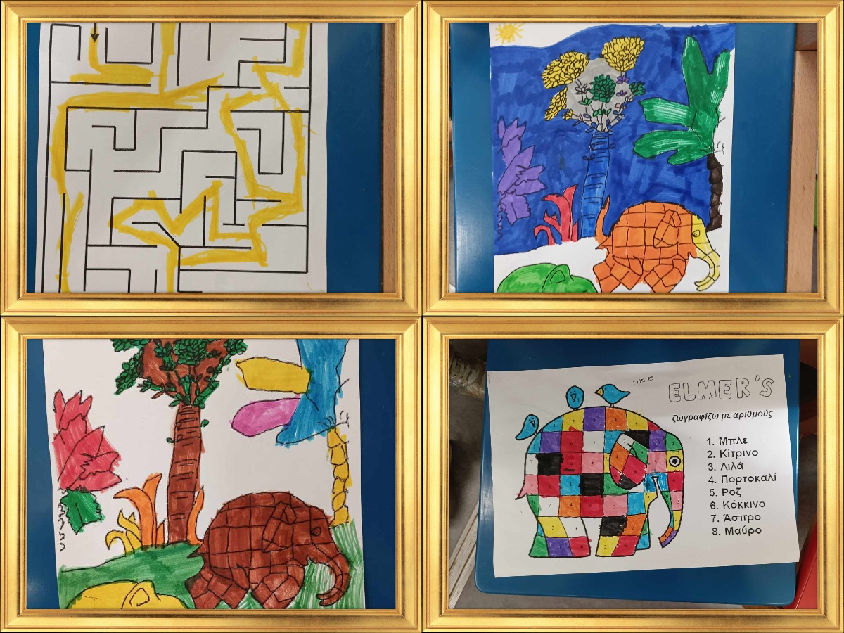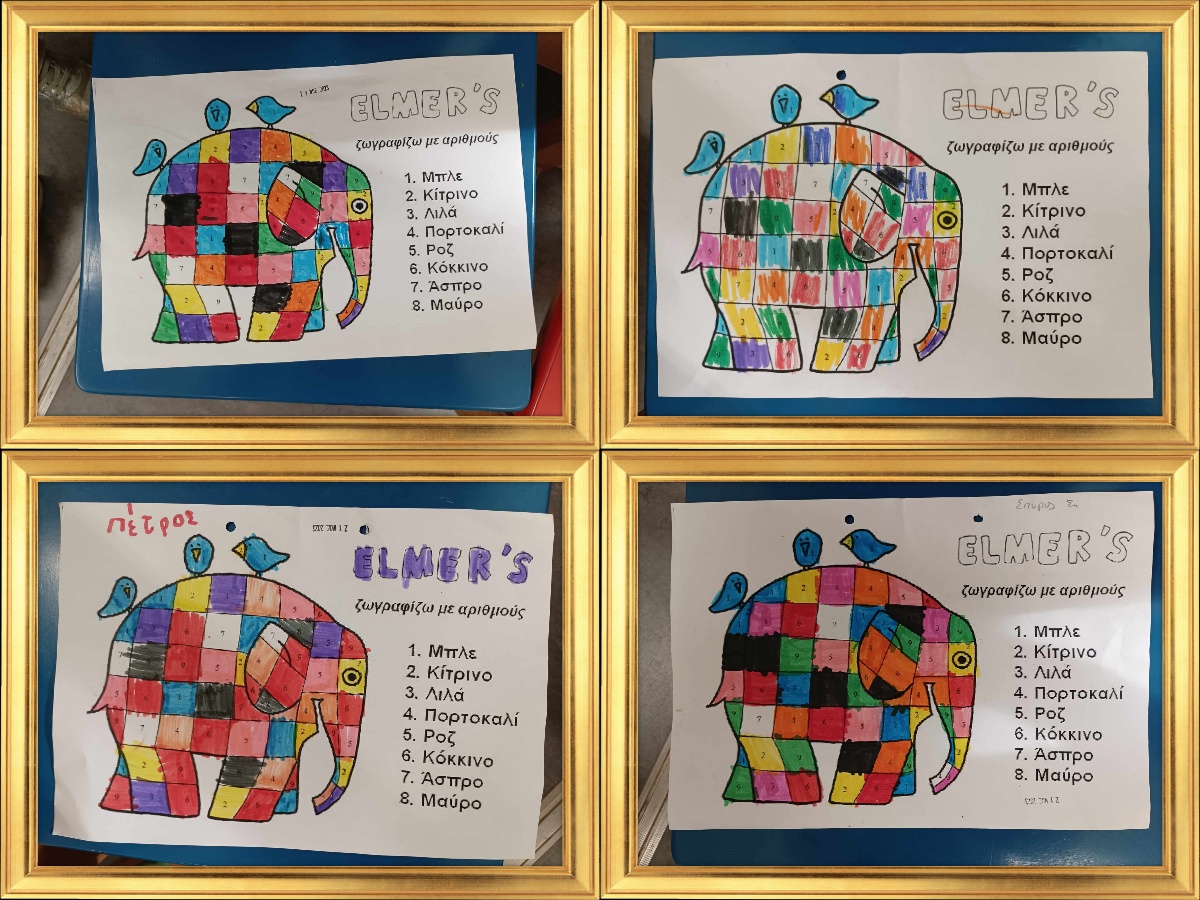Ο Έλμερ ο παρδαλός ελέφαντας είναι ένας ήρωας που αγαπήθηκε από πολλές γενιές παιδιών προσχολικής ηλικίας αλλά και εκπαιδευτικούς, αφού μέσα από αυτόν τον τρυφερό ήρωα μπορούν να μιλήσουν στα παιδιά για αξίες όπως η διαφορετικότητα, η φιλία κ.ά. Συνεχίσαμε σήμερα και με άλλες δραστηριότητες :κωδικοποίηση,διαδρομές ,αντιστοίχηση και ζωγραφική,όλα με τον ΕΛΜΕΡ