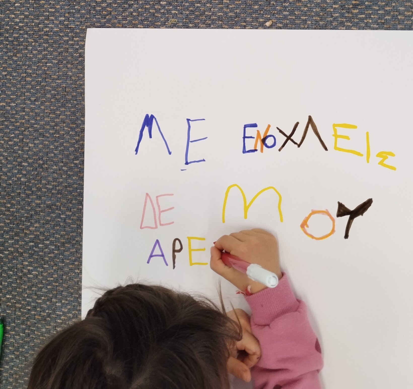 Έπαιξαν παιχνίδια ρόλων, του θύτη και του θύματος, δημιουργώντας σενάρια εκφοβισμού όπως ”μου σκίζουν τη ζωγραφιά μου”, ”πειράζουν τα πράγματά μου”, ”αρπάζουν το παιχνίδι μου”, ”με σπρώχνουν”, ”με κοροϊδεύουν” και άλλα.