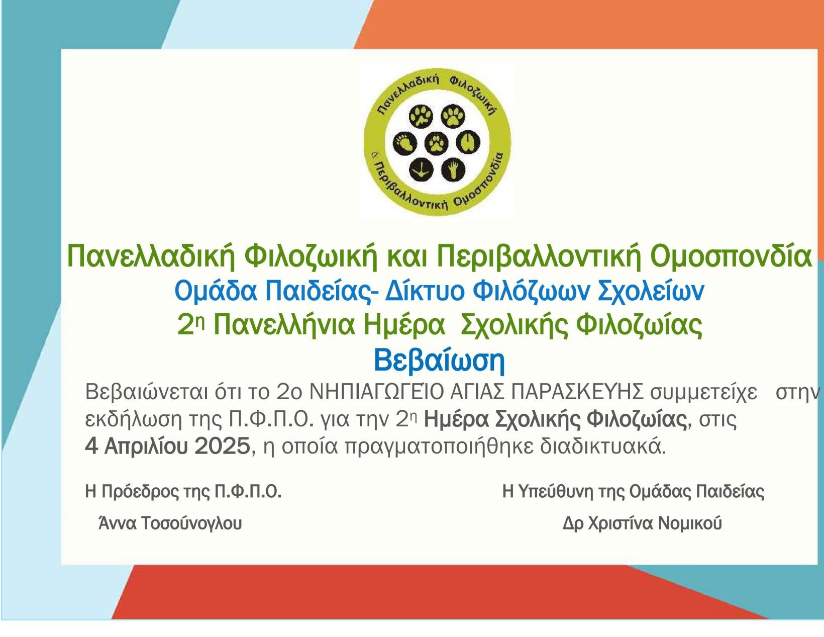 -Στο σχολείο μας τα παιδιά παρακολούθησαν διαδικτυακή παρουσίαση της Πανελλαδικής Φιλοζωικής και Περιβαλλοντικής Ομοσπονδίας για την Πανελλήνια Σχολική Ημέρα Φιλοζωίας.