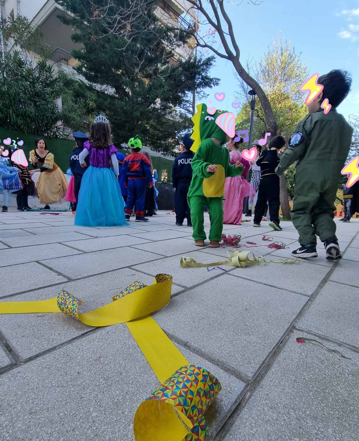 Την Παρασκευή 15 Μαρτίου πραγματοποιήθηκε η αποκριάτικη γιορτή του σχολείου μας. Τα παιδιά ντυμένα αποκριάτικα γιόρτασαν και διασκέδασαν μαζί με τις εκπαιδευτικούς και τις εμψυχώτριες της ομάδας ”ΤΡΕΛΟΣΕΡΠΑΝΤΙΝΑ”, στον προαύλιο χώρο του σχολείου. Μουσική, χορός, παιχνίδια, γαϊτανάκι, face painting, ενθουσίασαν όλα τα παιδιά!