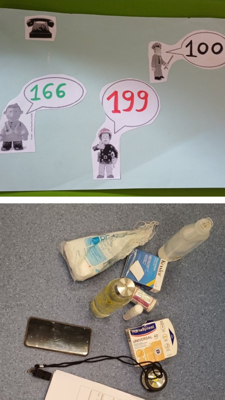 Τα παιδιά παρατήρησαν τα αντικείμενα που περιέχει το υπάρχον κουτί πρώτων βοηθειών της τάξης και συζήτησαν για την ανάγκη ύπαρξης του κουτιού, το περιεχόμενό του και τρόπους ανατροφοδότησής του . Με καταιγισμό ιδεών ανέφεραν περιπτώσεις, στις οποίες θα μπορούσε να φανεί χρήσιμο ένα κουτί έκτακτων αναγκών. Αποφάσισαν να δημιουργήσουν «Το Κουτί της Ασφάλειάς μας», ενός κουτιού βοήθειας σε περίπτωση ανάγκης για την τάξη.