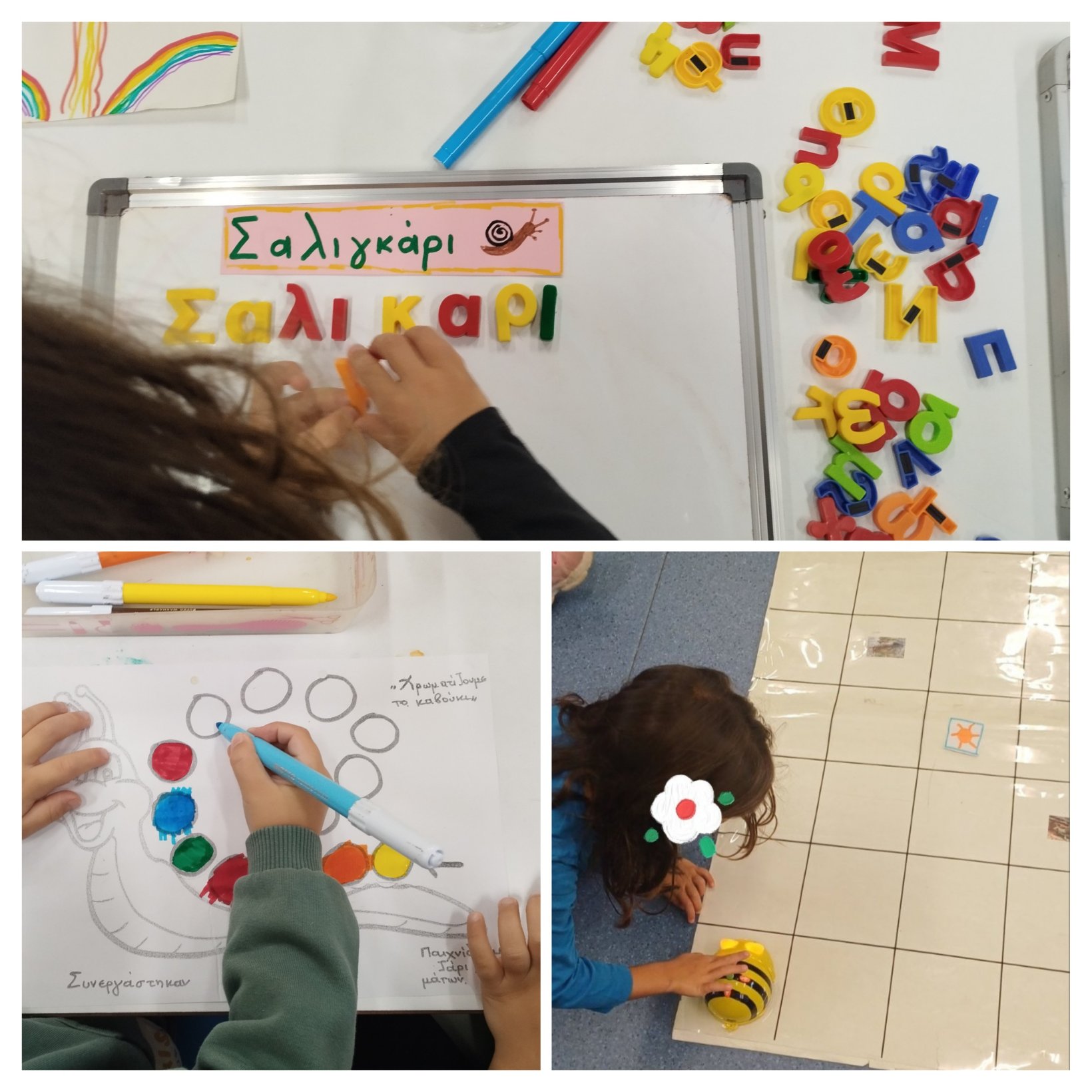 Παίξαμε επιτραπέζιο παιχνίδι ”Ζωγραφίζω το κέλυφος το Σαλιγκαριού”, γράψαμε λέξεις, προγραμματίσαμε το ρομποτάκι, τη Beebot, να βρει τα σαλιγκάρια!