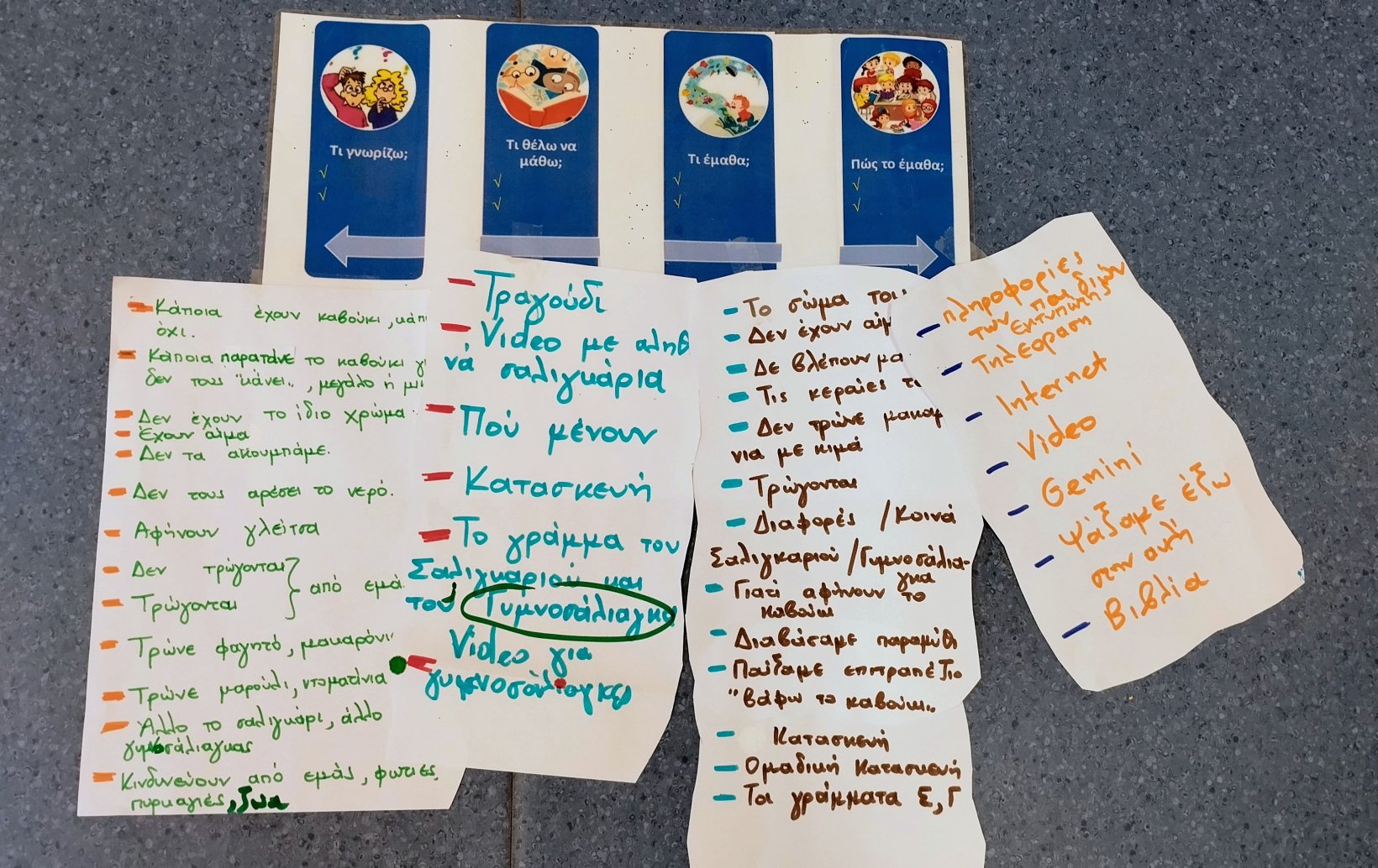 Έπειτα ανατρέξαμε στο πίνακα K-W-L-H (Τι γνωρίζω-Τι θέλω να μάθω-Τι έμαθα-Πώς το έμαθα) και συζητήσαμε τι μάθαμε, πώς το μάθαμε, τις εντυπώσεις – αξιολογήσεις μας.