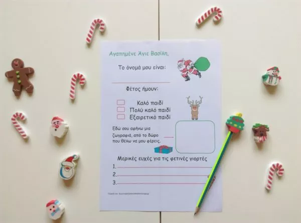 Μια δραστηριότητα που απαραίτητα πρέπει να κάνει κάθε παιδί τα Χριστούγεννα, είναι να γράψει το δικό του γράμμα στον Άγιο Βασίλη για να του ζητήσει το δώρο που επιθυμεί.