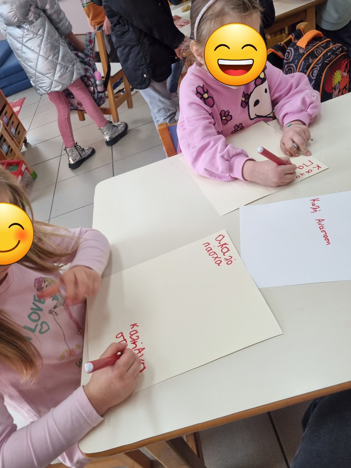 Στη συνέχεια ετοιμάσαμε πασχαλινή κάρτα και γράψαμε πάνω ευχές….
