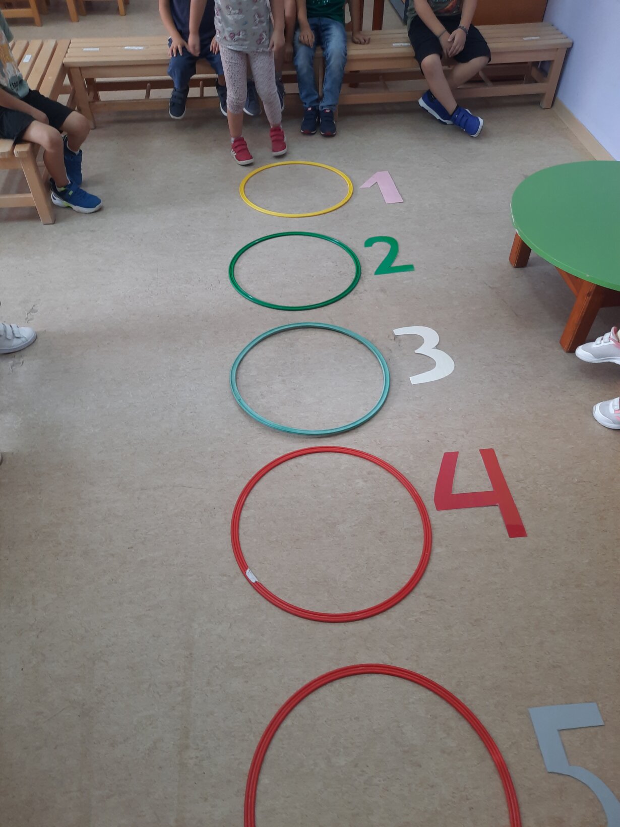 Στη συνέχεια θυμηθήκαμε το παιχνίδι γνωριμίας με τα στεφάνια και τις συλλαβές και τοποθετήσαμε το όνομα μας στο αριθμό των συλλαβών.