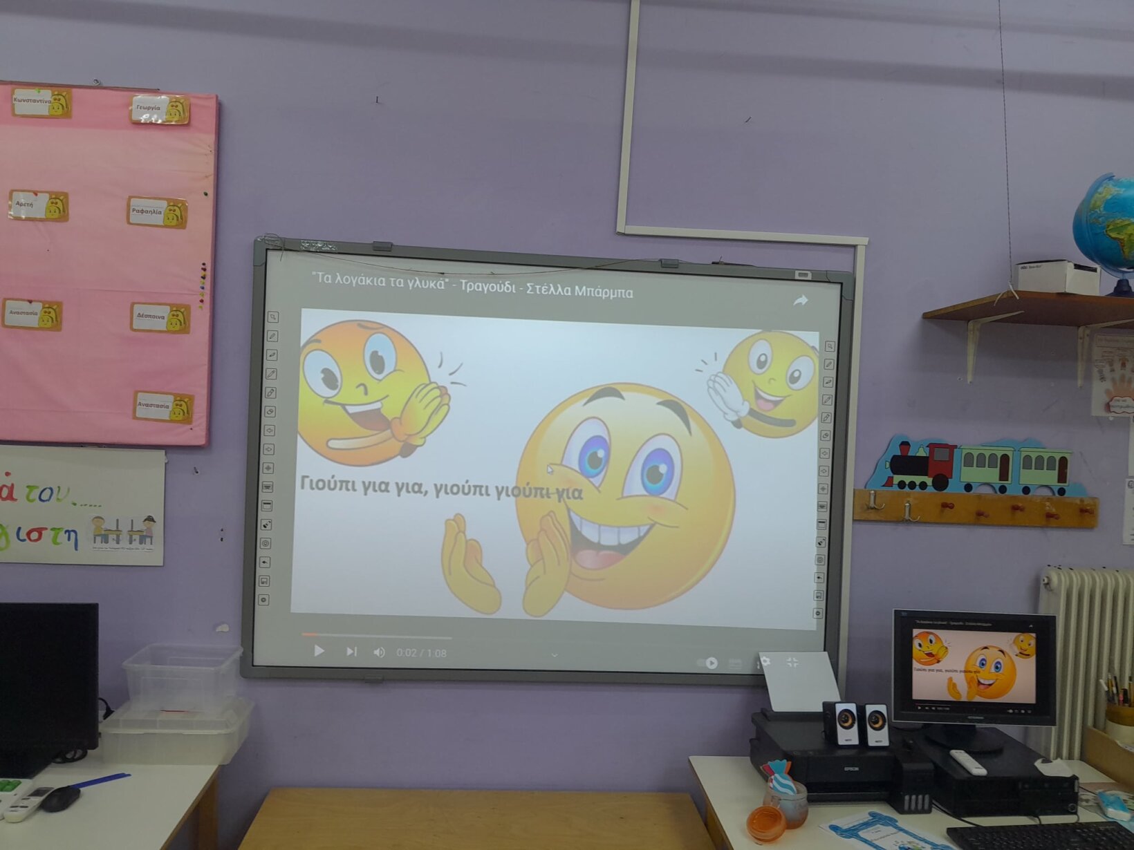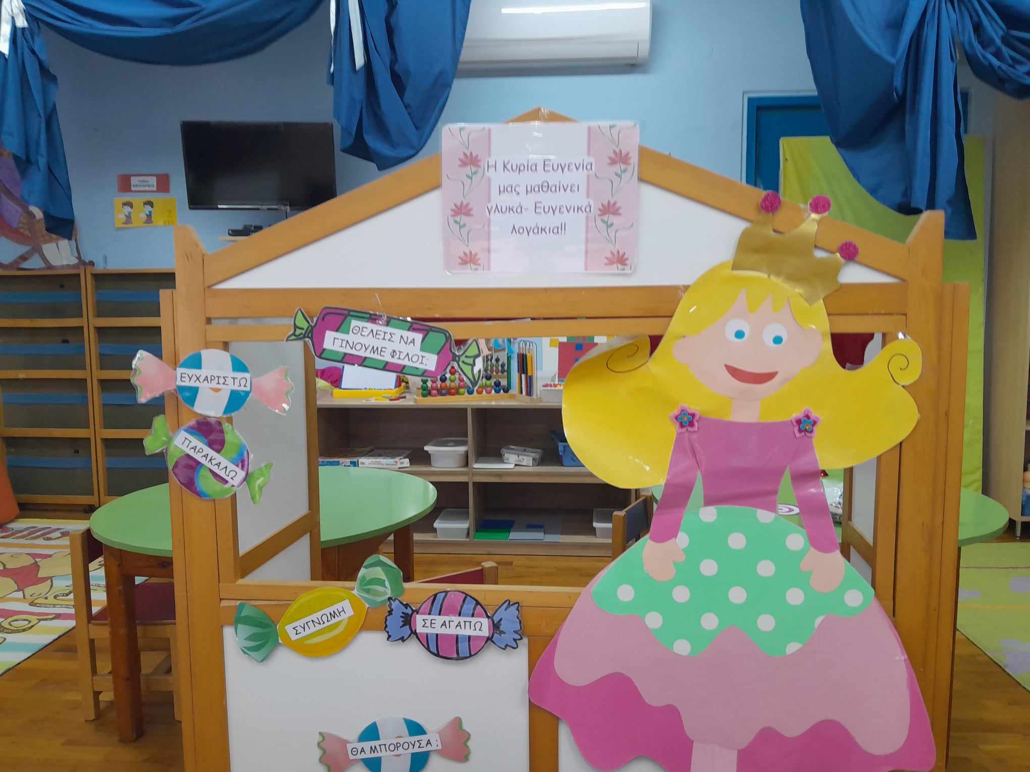 Η γλυκιά Νεράιδα κ.Ευγενεια μας μαθαίνει γλυκά λογάκια(ευγενικός τρόπος επικοινωνίας στην ομάδα)και μας μοίραζε καραμέλες και χορέψαμε το τραγουδι “Γιουπι για τα λογάκια τα γλυκά”!