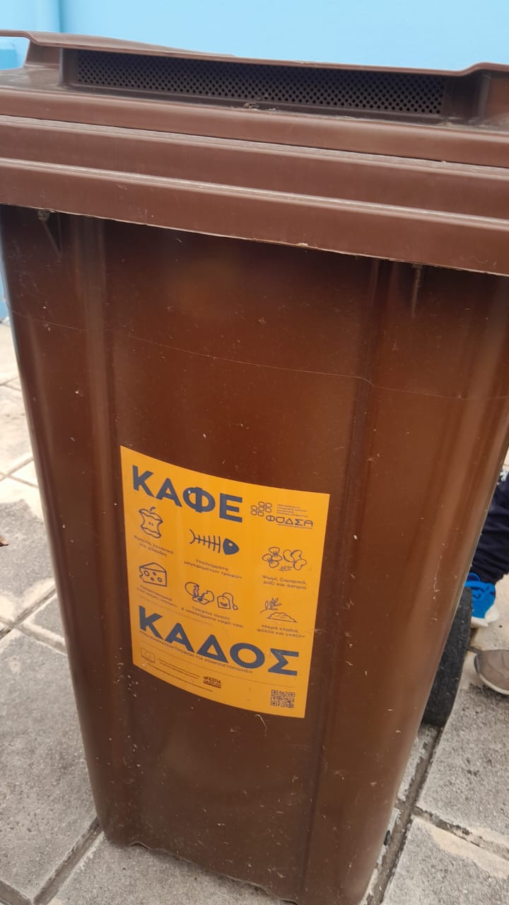 - Κατασκευή κομποστοποιητή Παραλαβή καφέ κάδου ανακύκλωσης – κομποστοποίησης από το δήμο για αξιοποίηση οργανικών απορριμμάτων.