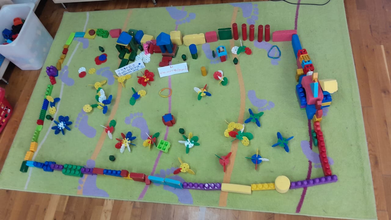 - Οι ιδέες των παιδιών απεικονίστηκαν εικαστικά από τα ίδια και συγκεντρώθηκαν για να συζητηθούν στην ολομέλεια. Επίσης, τα παιδιά δημιούργησαν μια αρχική μακέτα της αυλής με lego.