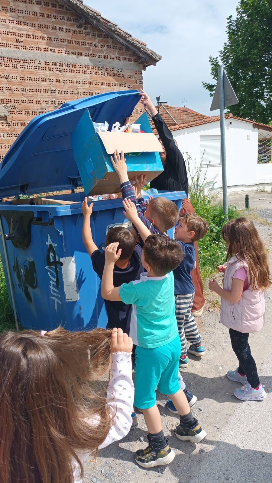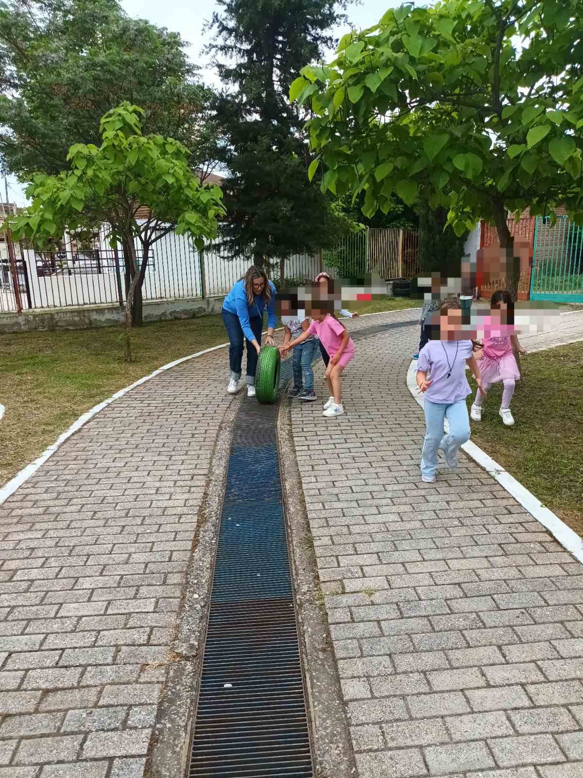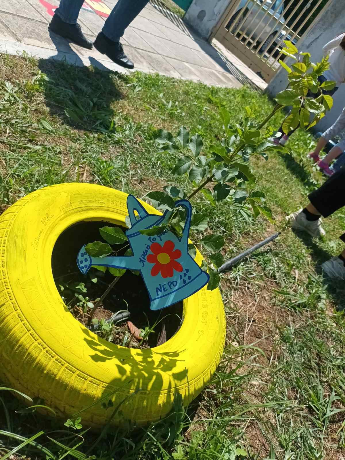 - Κατασκευή έργων τέχνης με φυσικά υλικά από την αυλή του σχολείου ανακυκλώσιμα υλικά (π.χ. παλιά λάστιχα, ξύλα).