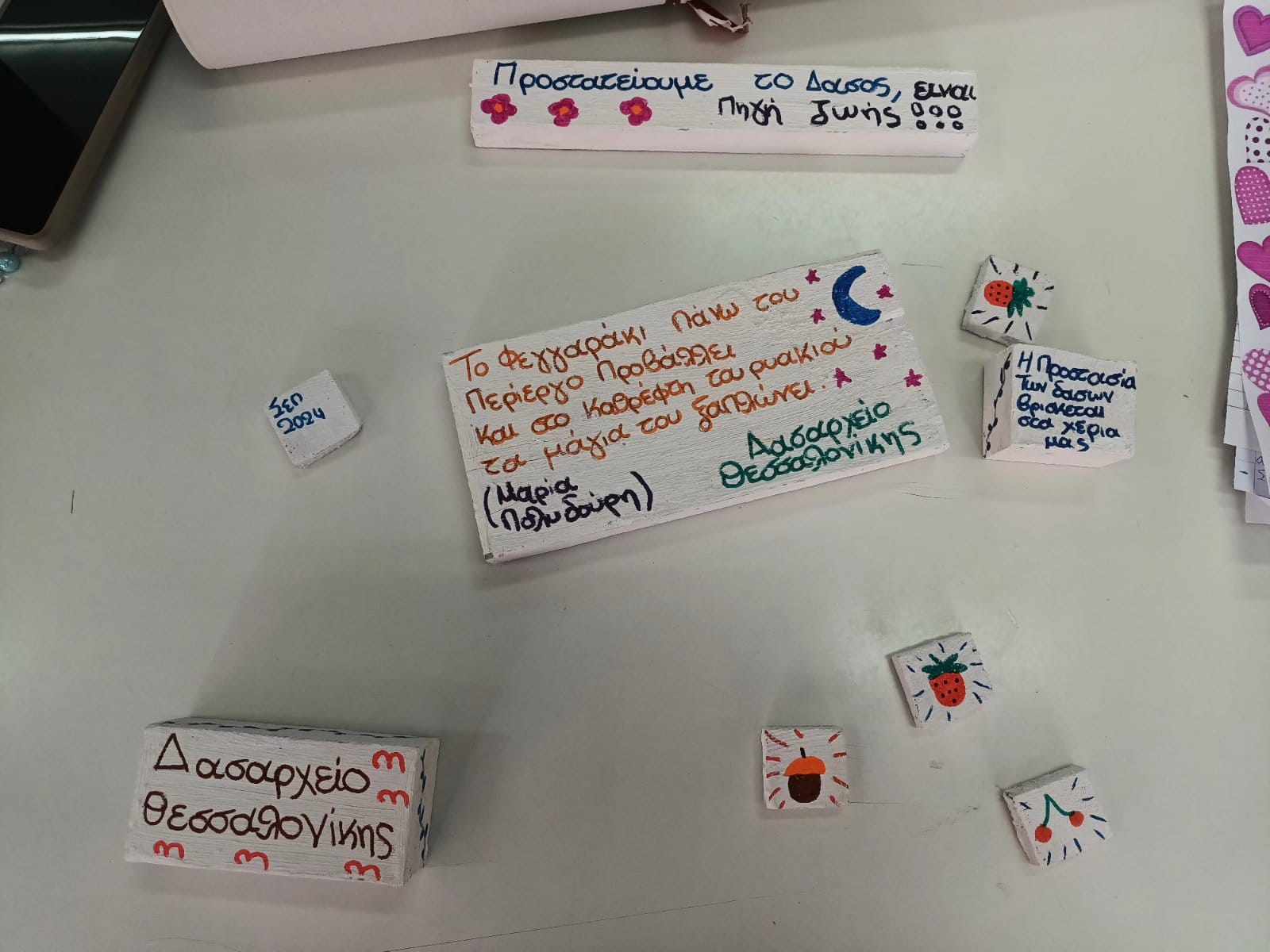 - Πρόσκληση γεωπόνων και δασολόγων από το Δασαρχείο Θεσσαλονίκης για καθοδήγηση των φυτεύσεων και περιβαλλοντική ενημέρωση σχετικά με τα δέντρα και τα δάση αλλά και ταυτοποίηση των δέντρων που φιλοξενεί η αυλή του σχολείου.