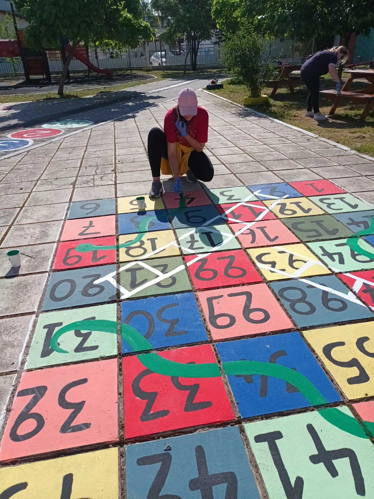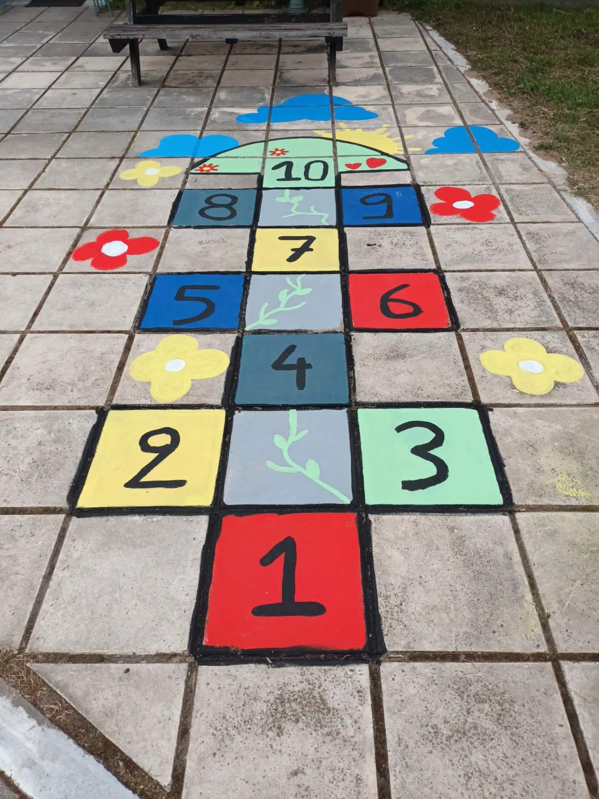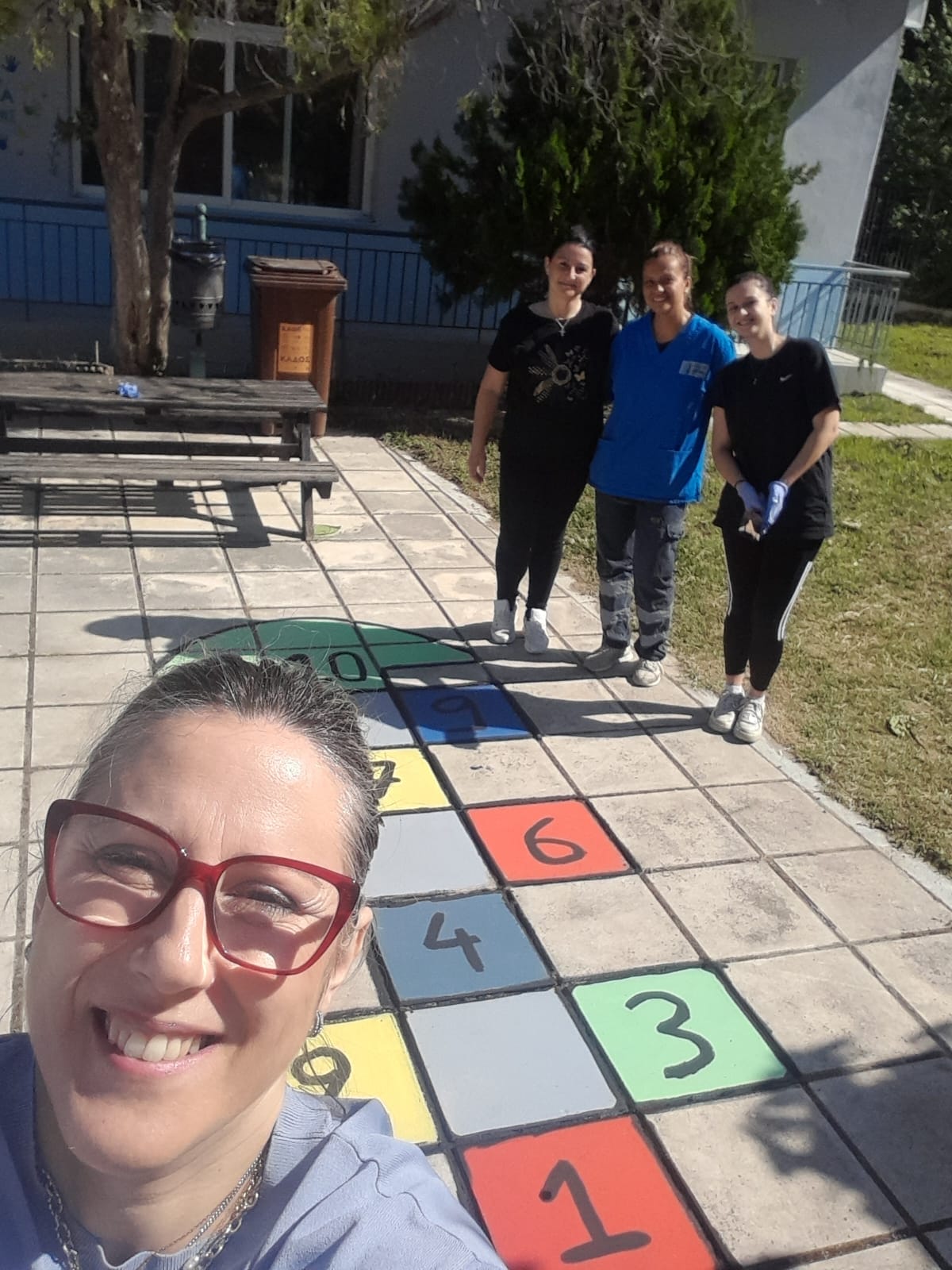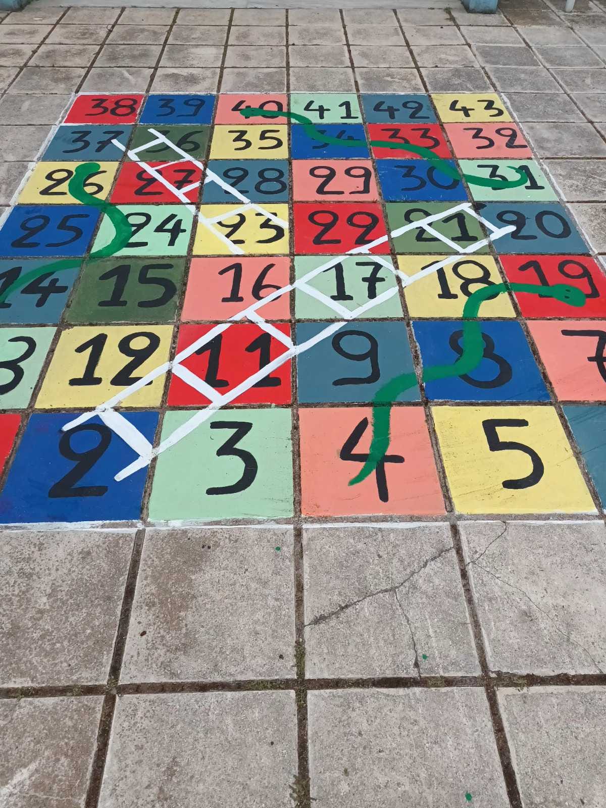 - Κατασκευή και ζωγραφική επιδαπέδιων παιχνιδιών (κουτσό, σαλίγκαρος, λαβύρινθος).