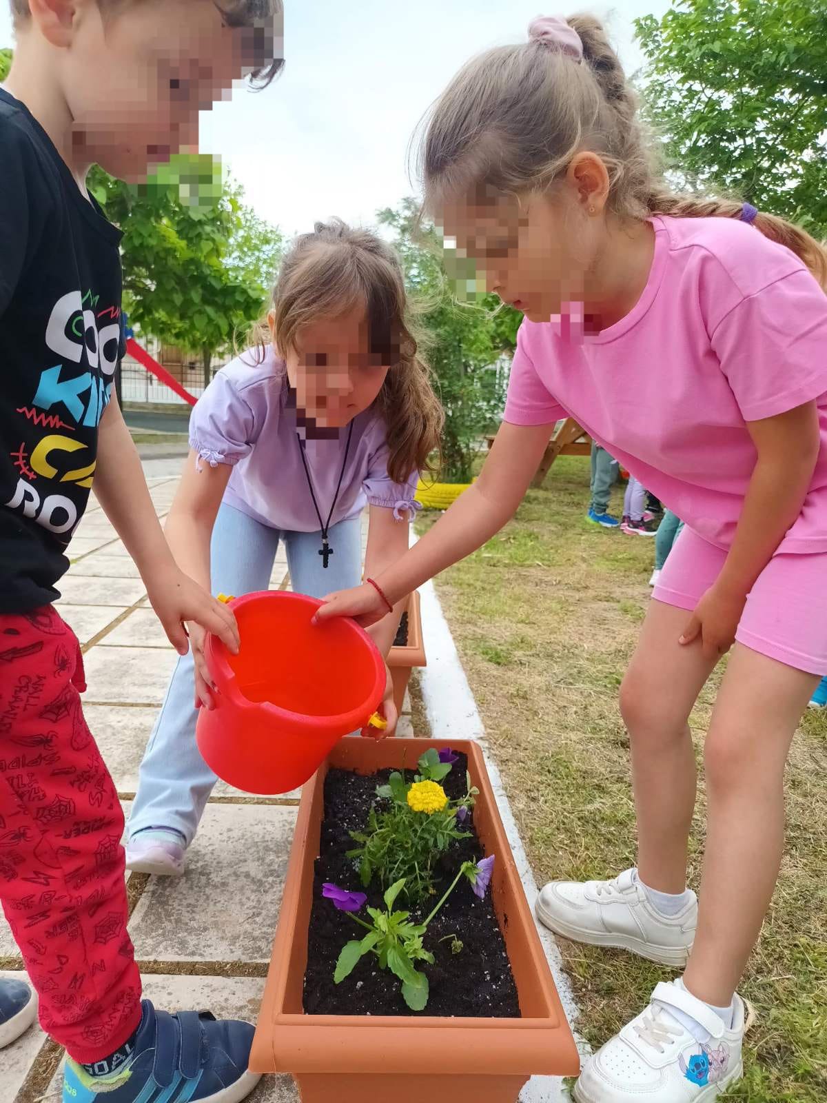 - Φύτευση λουλουδιών, θάμνων και αρωματικών φυτών σε παρτέρια και στις αυτοσχέδιες γλάστρες που φτιάχτηκαν από λάστιχα αυτοκινήτων τα οποία βάφτηκαν με διάφορα χρώματα .