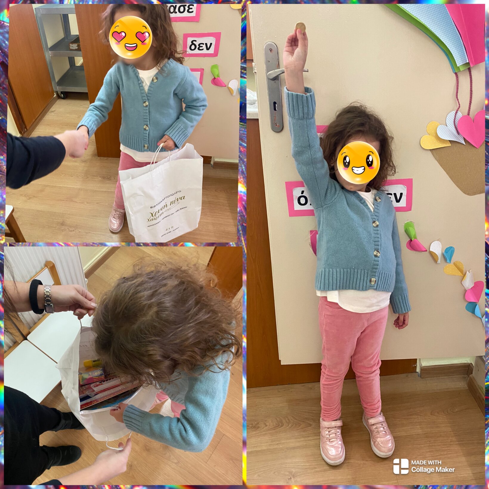 Στο κλείσιμο της μέρας, κάθε παιδί πήρε το δικό του μικρό αναμνηστικό δωράκι, για να κρατήσει μαζί του τη γλυκιά ανάμνηση της πρώτης αυτής εμπειρίας στο νηπιαγωγείο.