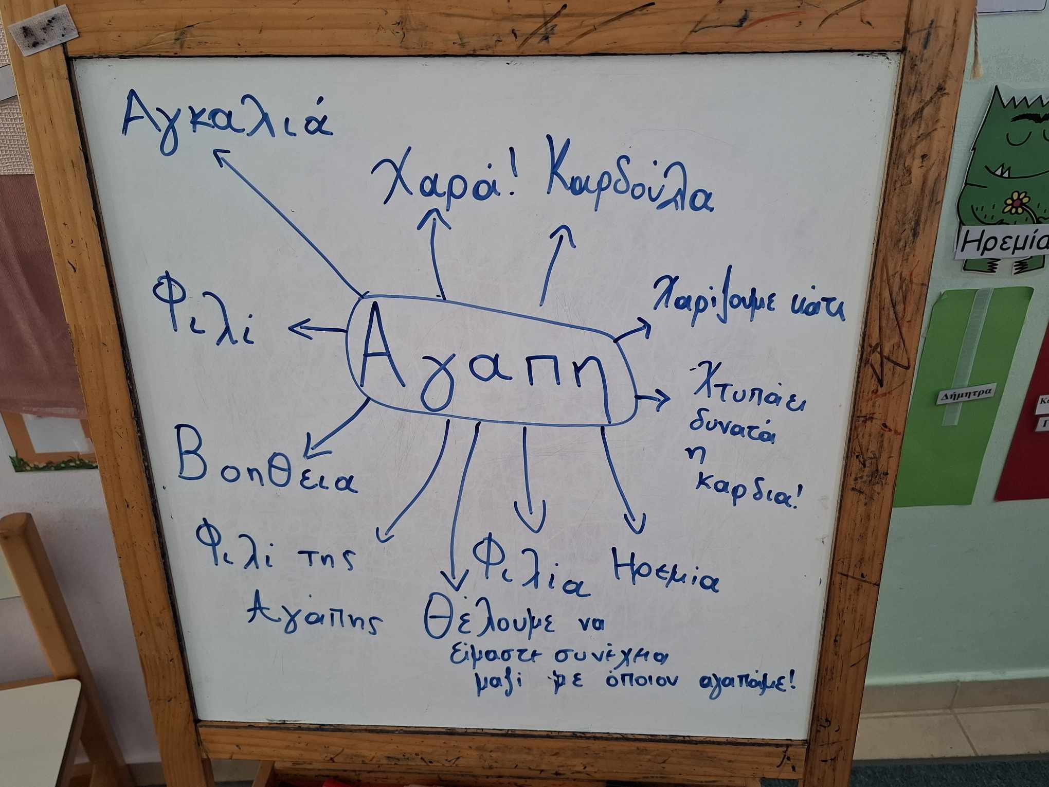 ενθάρρυνση, χαρά, φιλία, αγάπη, υπομονή, φροντίδα, ασφάλεια, συνεργασία). Μόλις την έβρισκαν ζητήσαμε από τα παιδιά να μας περιγράψουν κι άλλες καθημερινές στιγμές που ανταποκρίνονται στον κρυμμένο θησαυρό που ανακάλυψαν. Χρησιμοποιήσαμε και την Beebot του σχολείου μας για να ανοίξουμε μερικά σεντούκια. Αφού ανοίξαμε όλα τα σεντούκια και όλες τις εικόνες, παρουσιάσαμε στα παιδιά μεγάλες κάρτες-σύμβολα (καρδιά, ουράνιο τόξο, λουλούδι, χαρούμενη φατσούλα κ.τ.λ.).