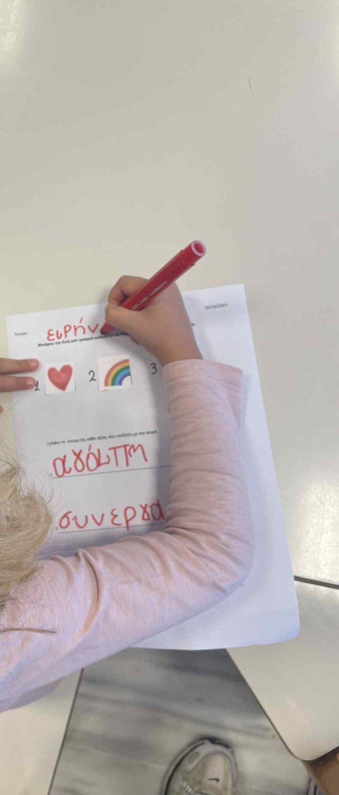 Τέλος, το κάθε παιδί επέλεξε 3 σύμβολα για να φτιάξει τον δικό του κώδικα αξιών και να τον παρουσιάσει στην υπόλοιπη τάξη.
