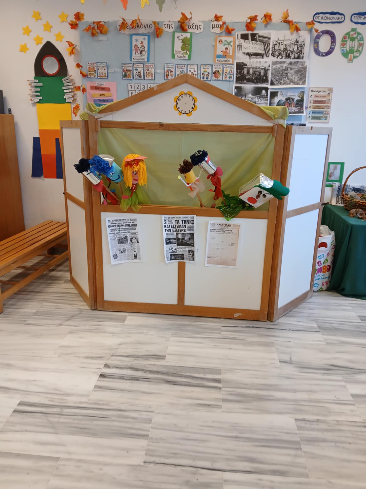 Τέλος, αφού διαβασαμε το παιδικό βιβλίο “Τενεκεδούπολη” παρακολούθησαν την ιστορία του και στο κουκλοθέατρο…