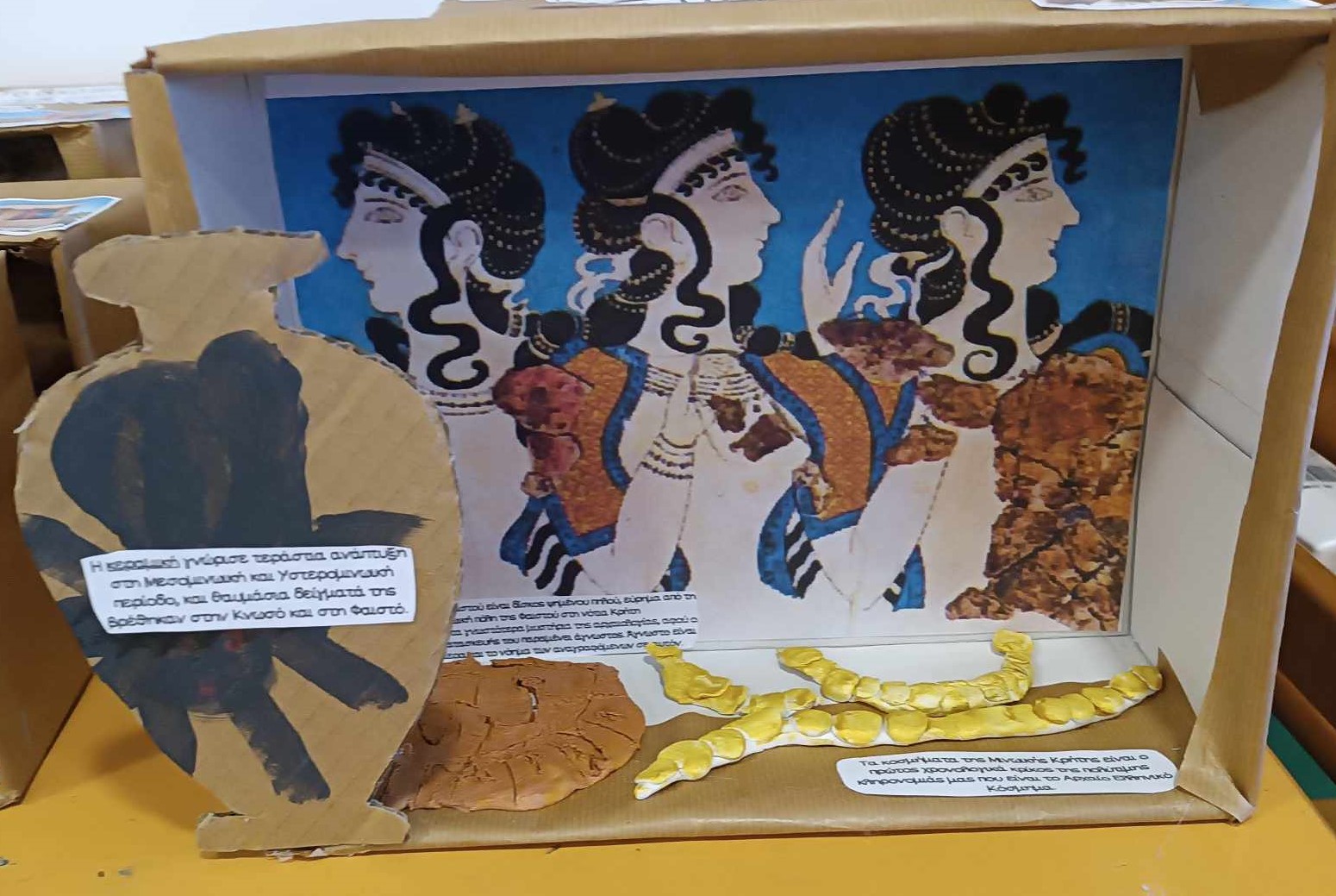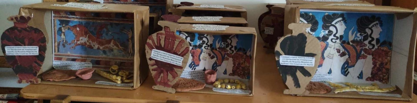 Η φαντασία δεν σταμάτησε εκεί! Με πυλό φτιάξαμε: Κοσμήματα εμπνευσμένα από τις τοιχογραφίες.Αγγεία διακοσμημένα με σχέδια εμπνευσμένα από τη θάλασσα.