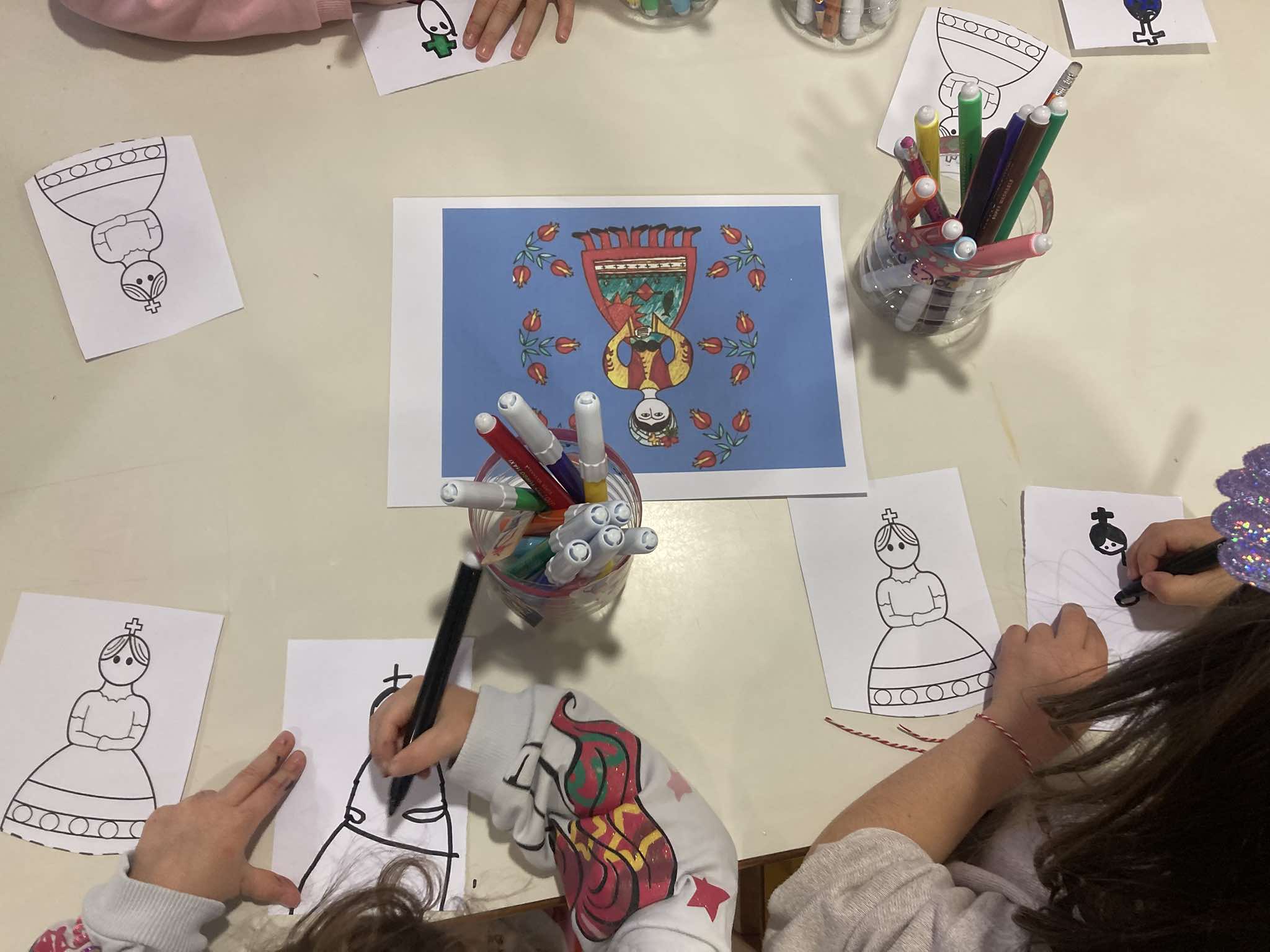 Φτιάξαμε τις δικές μας ελληνικές σημαίες για να στολίσουμε την τάξη και να δημιουργήσουμε μια ατμόσφαιρα γιορτής και εθνικής υπερηφάνειας. Μελετήσαμε την ενδυμασία της εποχής και κατασκευάσαμε χαριτωμένα τσολιαδάκια, μαθαίνοντας για τη φουστανέλα, το φέσι και τη στολή του τσολιά. Φτιάξαμε την ομαδική μας κατασκευή για να την στολίσουμε στο σχολείο μας.