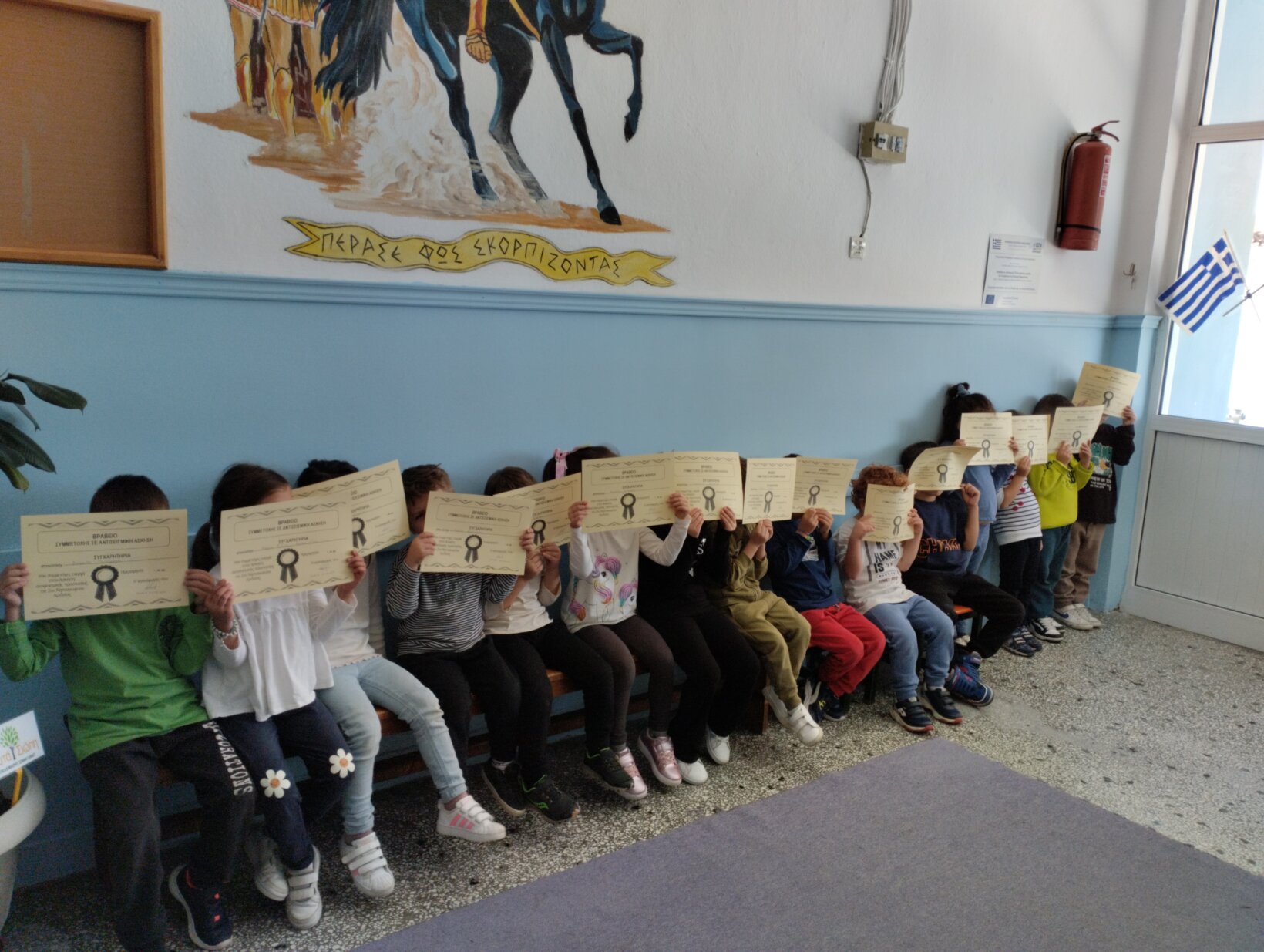 Τα παιδιά πήραν το βραβείο συμμετοχής σε αντισεισμική άσκηση.
