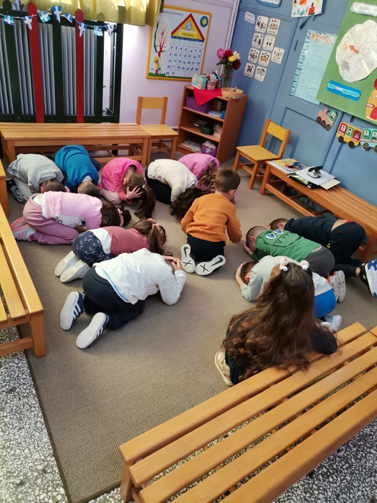 Όπως κάθε χρόνο, και σύμφωνα με την οδηγία του υπουργείου, πραγματοποιήσαμε την Τετάρτη στο νηπιαγωγείο μας άσκηση σεισμού.