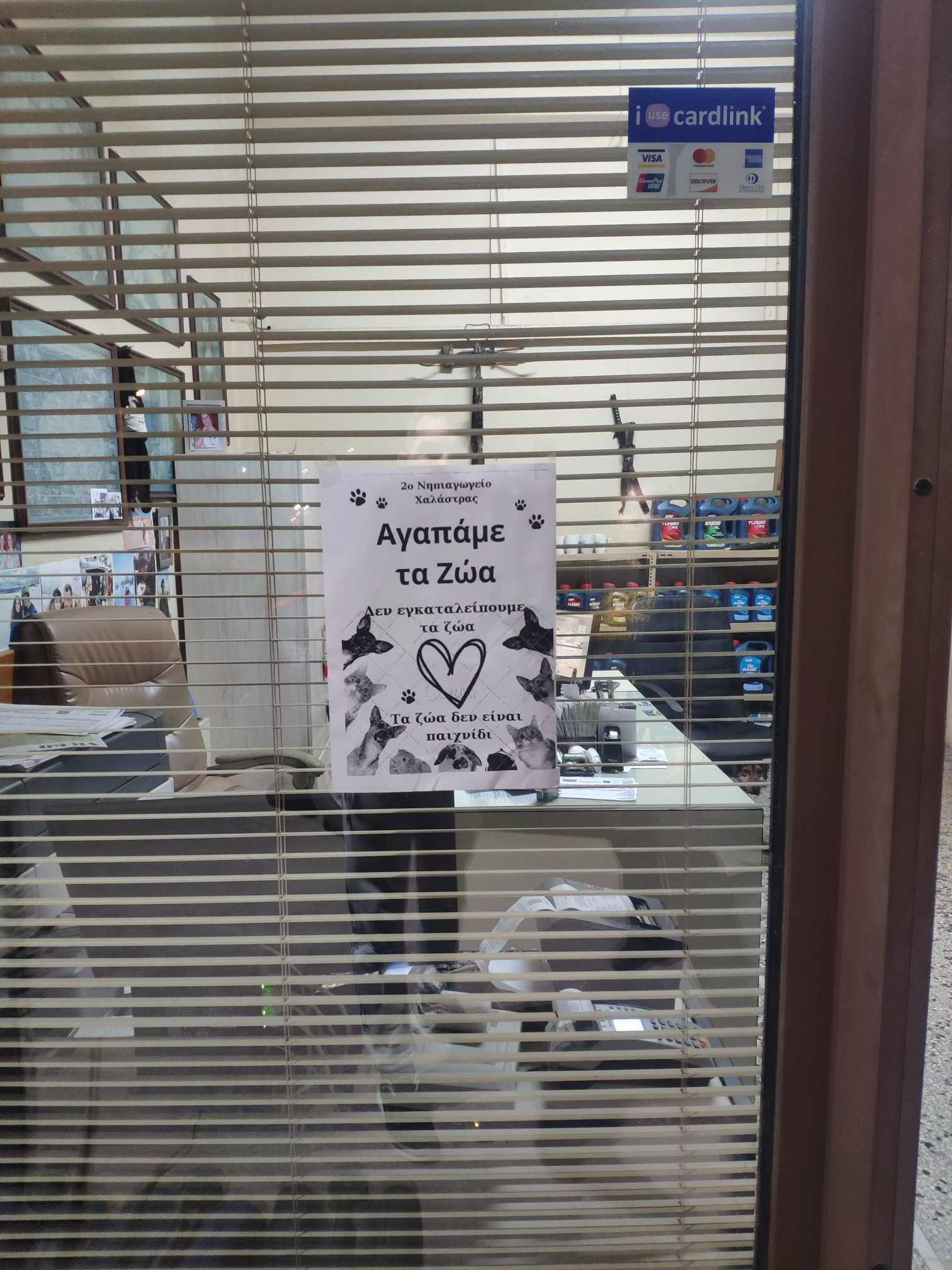 Προϊόν αυτής της κουβέντας ήταν να δημιουργήσουμε μια αφίσα, να την εκτυπώσουμε και να την τοιχοκολλήσουμε όπου μπορούμε , ώστε κανένα ζωάκι να μην είναι δίχως σπίτι και εγκαταλελειμμένο