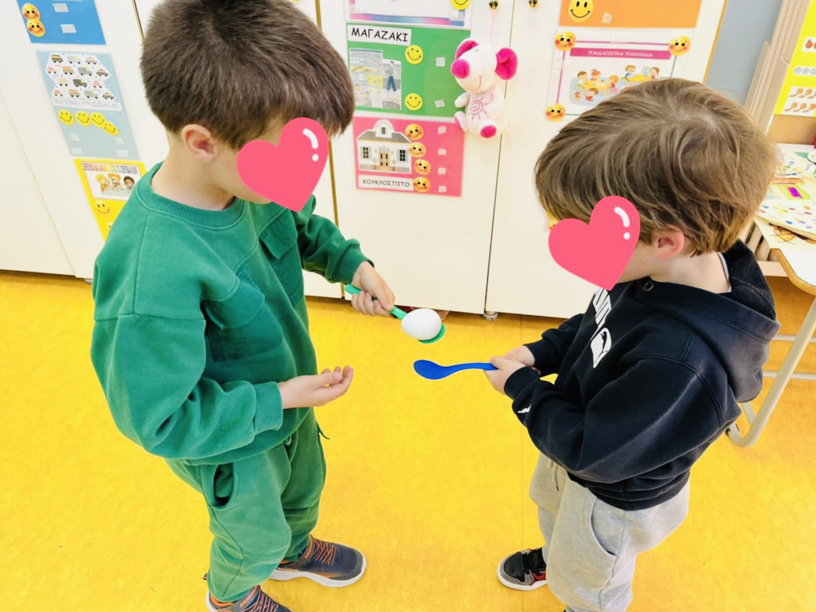 Φέτος – αρχές Απριλίου του 2023 – και στα 4 τμήματα του Νηπιαγωγείου μας επεξεργαστήκαμε πασχαλινές ιστορίες, γίναμε κότες και λαγοί, φτιάξαμε επιτραπέζια παιχνίδια πασχαλινά, γεμίσαμε πασχαλινά αυγά, τα ζωγραφίσαμε, τα σχεδιάσαμε, τα βάψαμε και παίξαμε μαζί τους.