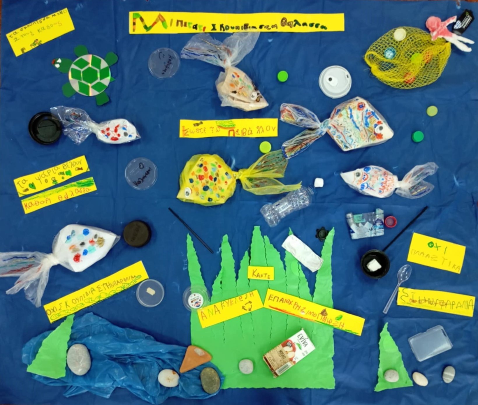 - ένα Freinet βιβλίο, με θεμα τη πλαστική μόλυνση των θαλασσών
