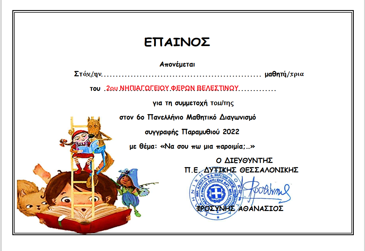 Φυσικά, αξίζει ένα τεράστιο ΜΠΡΑΒΟ σε όλα τα παιδιά του σχολείου μας, γι’ αυτό θα απονεμηθεί “Τιμητικός Έπαινος” σε όλους τους μαθητές και τις μαθήτριες του σχολείου μας!!!