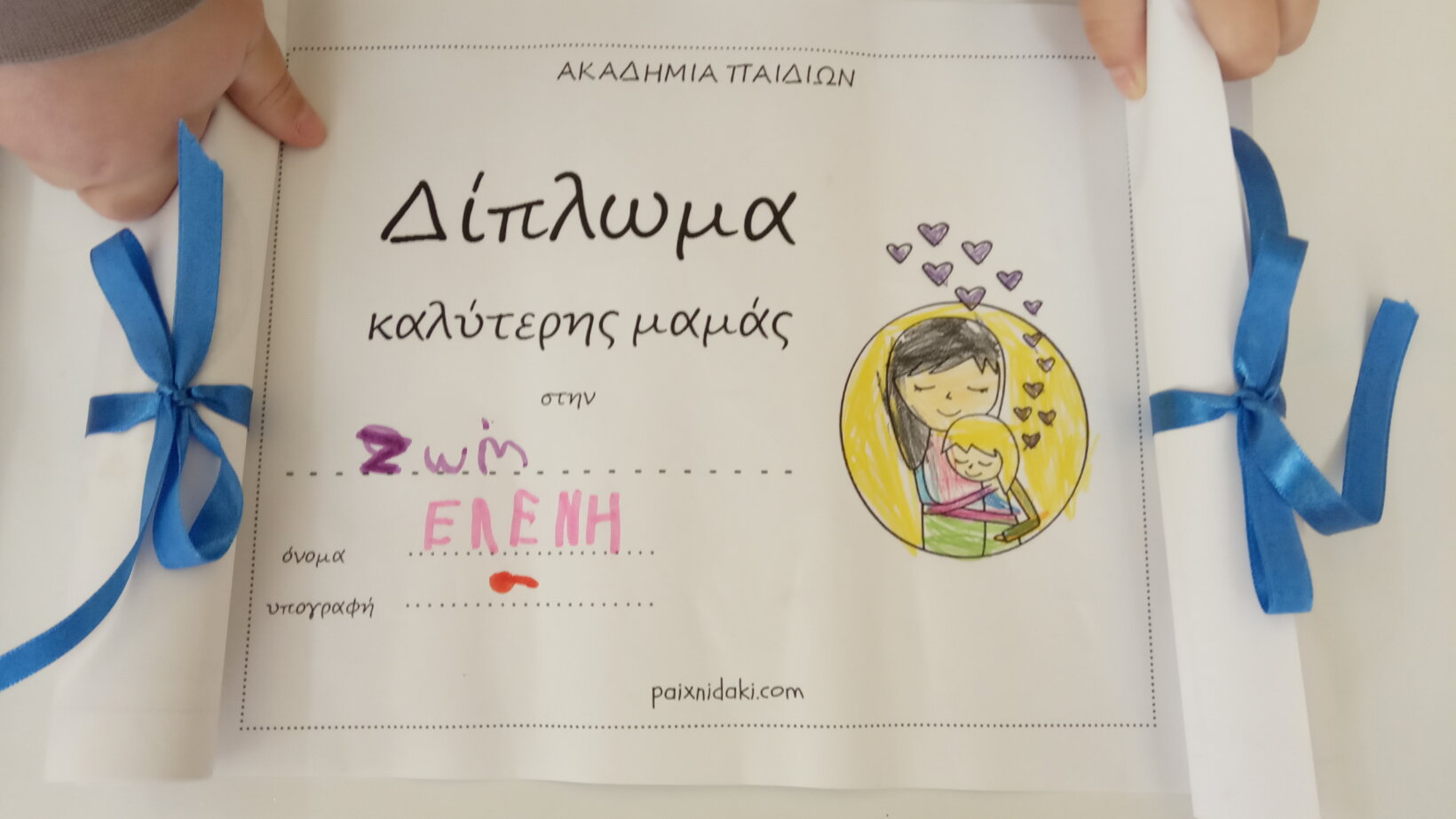 Αυτή τη μέρα όλοι αισθανόμαστε την ανάγκη να της πούμε ένα ΜΕΓΑΛΟ ΕΥΧΑΡΙΣΤΩ για ότι κάνει και έκανε για μας. Να της πούμε ευχές βγαλμένες μέσα από την ψυχή μας και “Σ’ αγαπάω μαμά”, να της σιγοψιθυρίσουμε γλυκά τραγούδια, να της δώσουμε μια τεράστια αγκαλιά, ένα ζεστό φιλί, ένα μπουκέτο όμορφα λουλούδια. Εκπαιδευτικοί και μαθητές/τριες συνεργάστηκαν, δημιουργώντας: