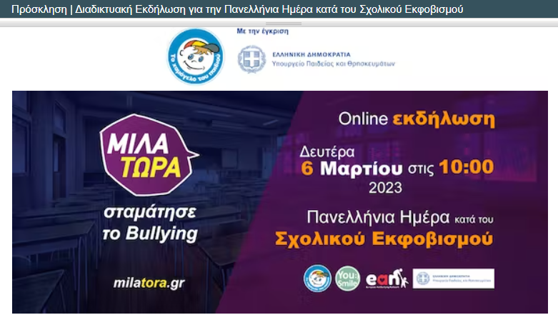 Μετά την δήλωση ενδιαφέροντος, από την πλευρά μας, για την προγραμματισμένη πανελλαδική συνάντηση το SaferInternet4kids έγραψε στο email του σχολείου μας: