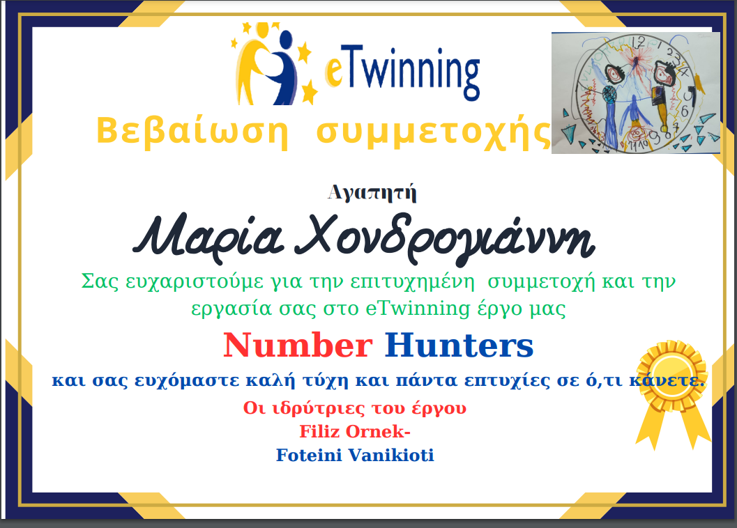 Συγχαρητήρια σε όλους τους Number Hunters μαθητές από Ελλάδα, Τουρκία, Ιταλία, Ισπανία και Εσθονία!! Συγχαρητήρια στους μαθητές του 2ου Νηπιαγωγείου Φιλιατρών!!!