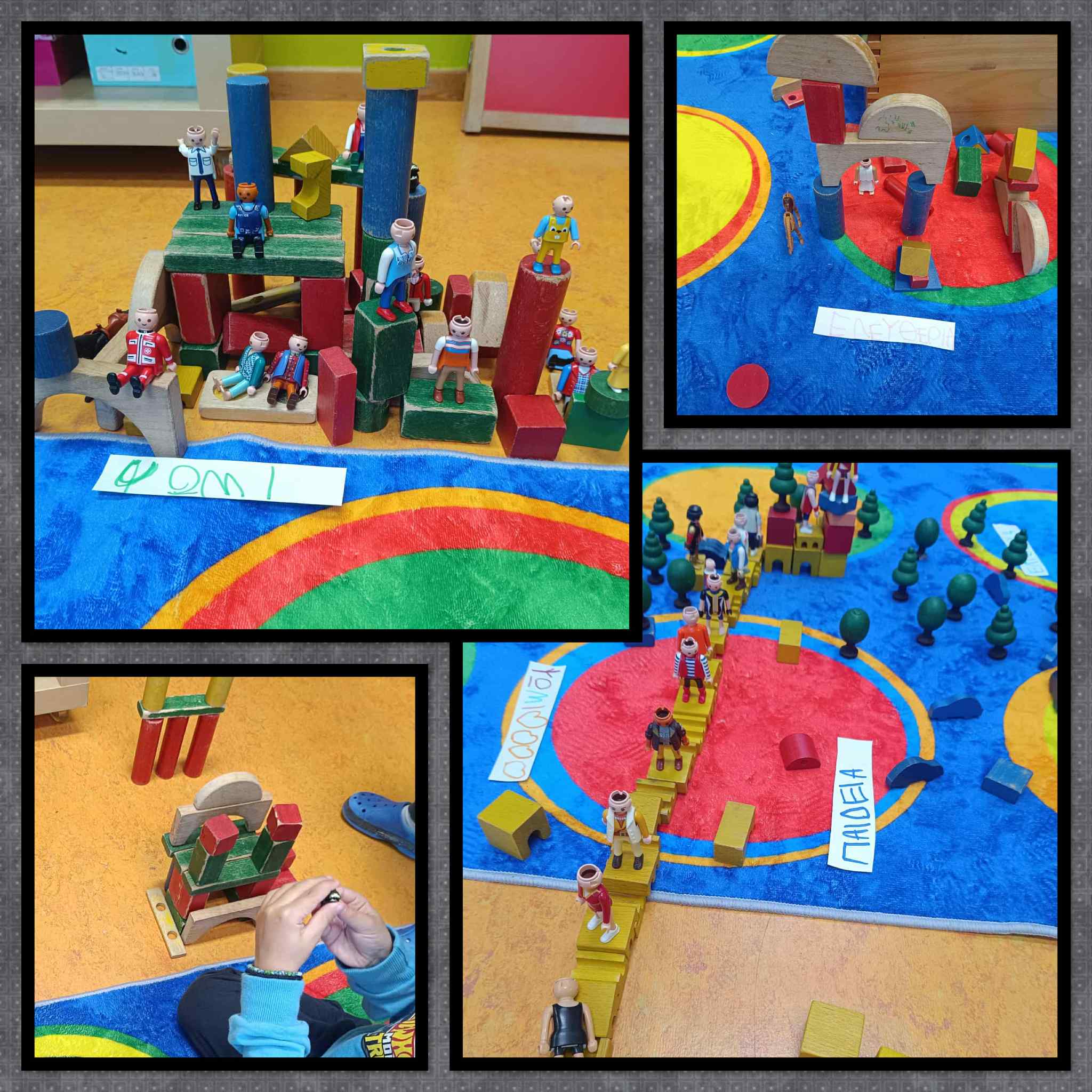 Για να προετοιμαστούμε για αυτή τη δημιουργία, συζητήσαμε πρώτα για τα γεγονότα του Πολυτεχνείου, διαβάσαμε τη «Ντενεκεδούπολη» της Ευγενίας Φακίνου και κατασκευάσαμε το κτήριο του Πολυτεχνείου με τουβλάκια και φιγούρες Playmobil.