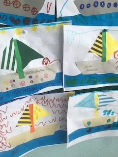 4η σελίδα ζωγράφισαν μία θάλασσα με καράβια , με πολλά απόβλητα και κόλλησαν σκουπίδια στο βυθό της.