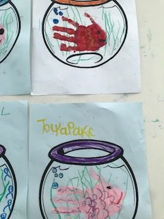 1η σελίδα ζωγράφισαν με τέμπερες τον καθαρό βυθό της θάλασσας και κόλλησαν ψαράκια , φύκια, κοχύλια και άλλα πλάσματα του νερού.